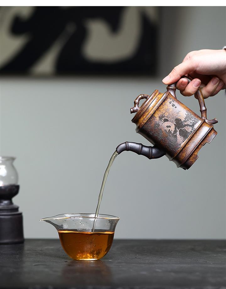 【泥料特點】砂土氣重,似淳實農民,日久使用,漸露鋒芒,養成變化,溫潤莊重。紫砂是壹種雙重氣孔結構的多孔性材質,氣孔微細,密度高。用紫砂壺沏茶,不失原味,且香不渙散,得茶之真香真味。紫砂使用越久,壺身色澤越發光亮照人,氣韻溫雅。紫砂壺長久使用器身會因撫摸擦拭,變得越發溫潤光澤。
