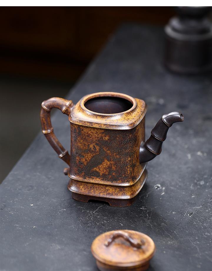 300cc原礦龍骨金砂特高溫四方竹段泡茶壺POT9981