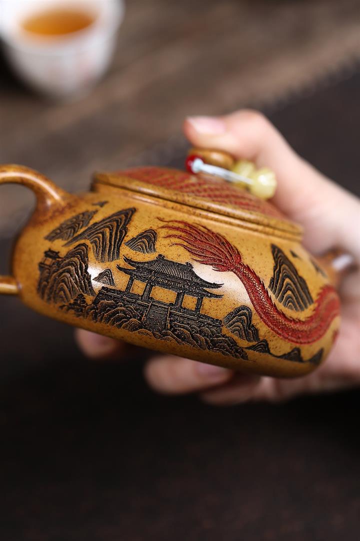 【作品介紹】此款壺形線條流暢,壺把,壺嘴,壺身壹氣呵成栩栩如生,是收藏把玩的好壺,泥料色澤古樸典雅,日久使用,漸露鋒芒,養成變化快,溫潤莊重,用其泡茶,使用的年代久,壺身就溫潤,泡出來的茶湯也就醇郁芳馨。