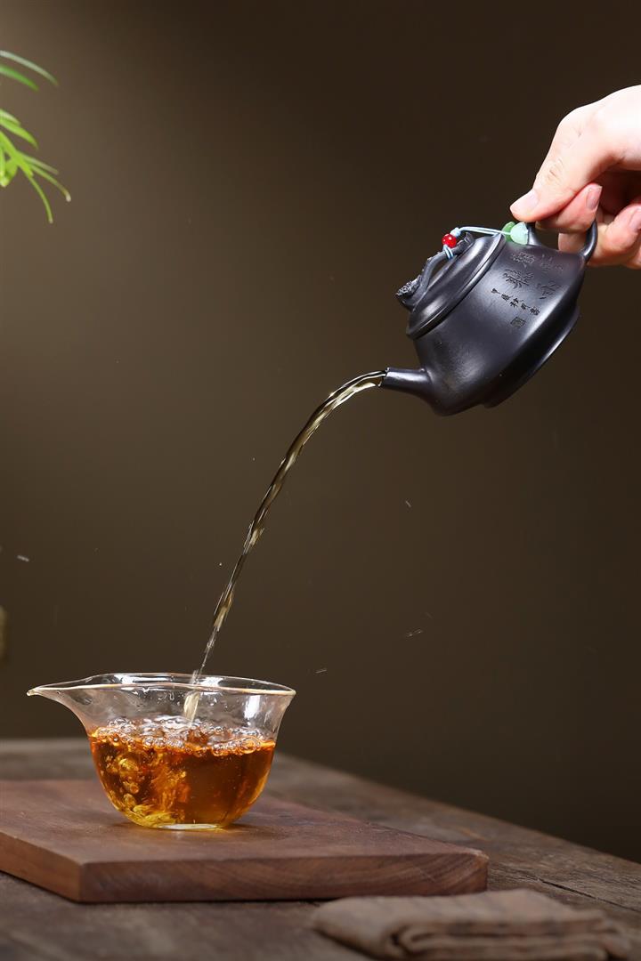 【泥料特點】砂土氣重,似淳實農民,日久使用,漸露鋒芒,養成變化,溫潤莊重。紫砂是壹種雙重氣孔結構的多孔性材質,氣孔微細,密度高。用紫砂壺沏茶,不失原味,且香不渙散,得茶之真香真味。紫砂使用越久,壺身色澤越發光亮照人,氣韻溫雅。紫砂壺長久使用器身會因撫摸擦拭,變得越發溫潤光澤。