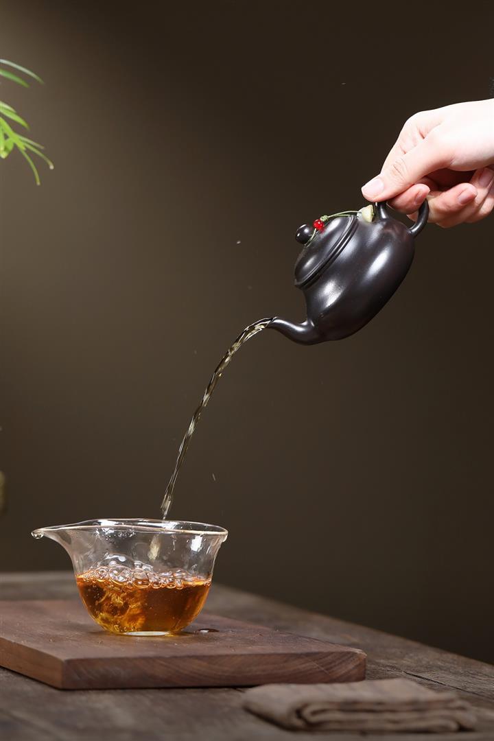 【泥料特點】砂土氣重,似淳實農民,日久使用,漸露鋒芒,養成變化,溫潤莊重。紫砂是壹種雙重氣孔結構的多孔性材質,氣孔微細,密度高。用紫砂壺沏茶,不失原味,且香不渙散,得茶之真香真味。紫砂使用越久,壺身色澤越發光亮照人,氣韻溫雅。紫砂壺長久使用器身會因撫摸擦拭,變得越發溫潤光澤。