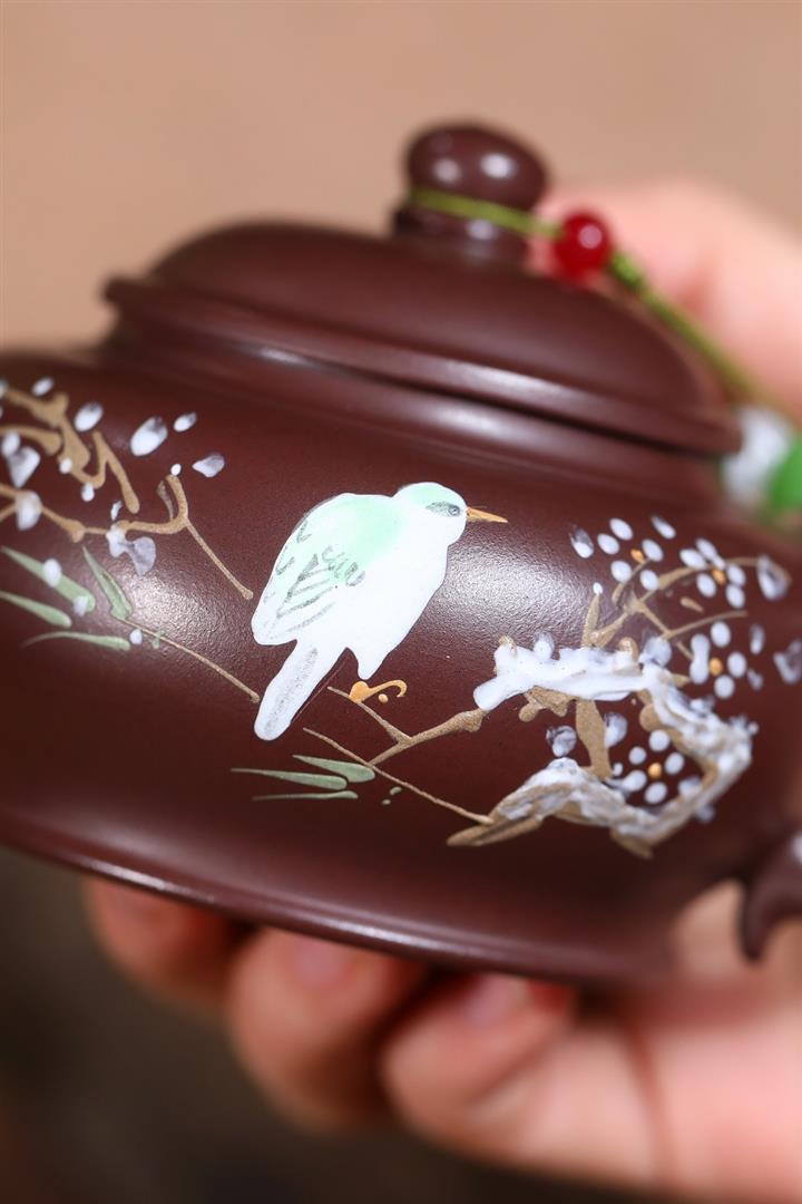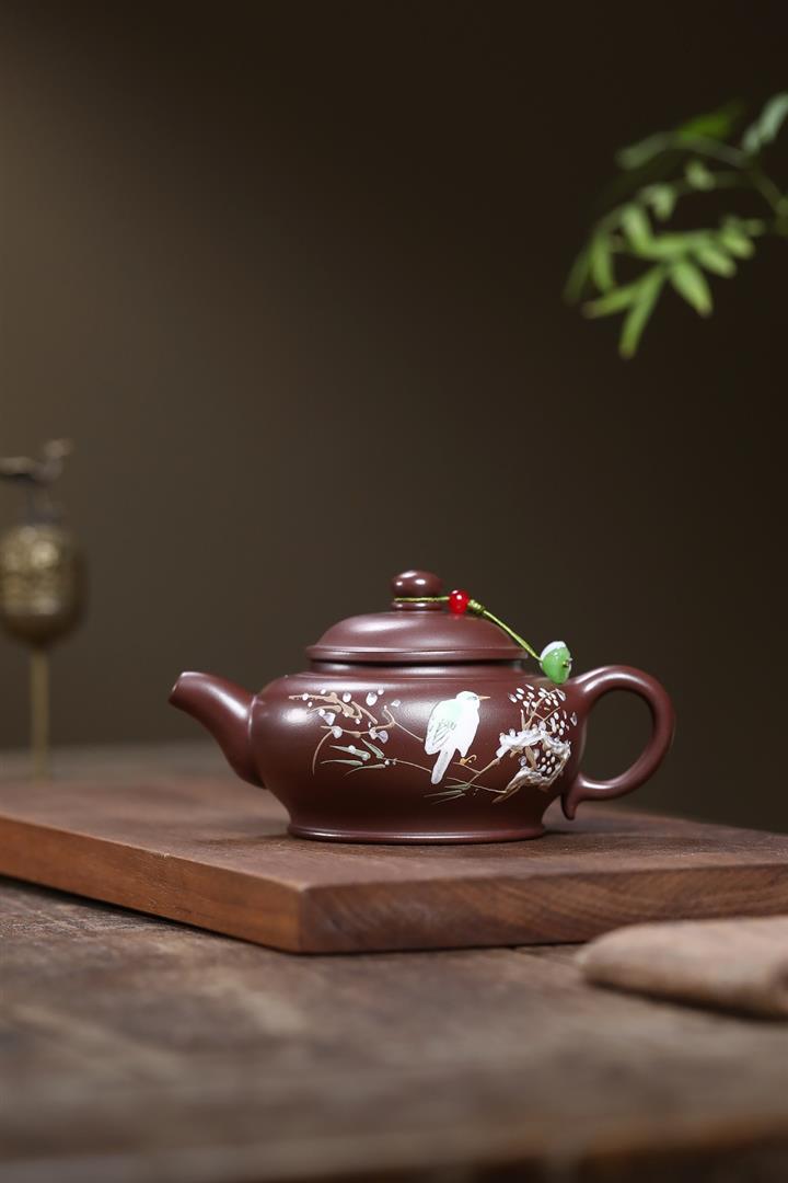 190cc原礦紫朱泥朱泥棲羽泡茶壺POT9997