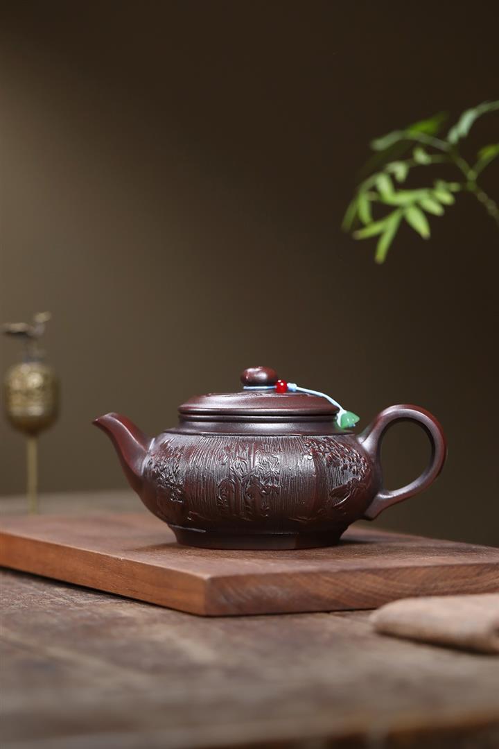 480cc原礦石紅泥百福竹節泡茶壺POT10002