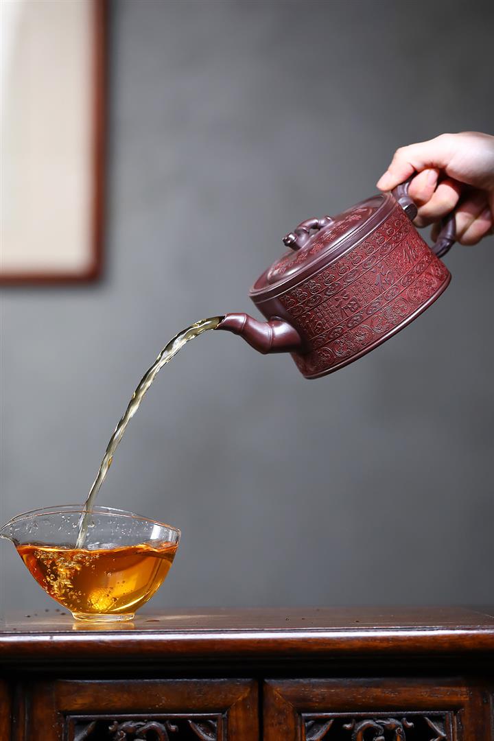 【泥料特點】砂土氣重,似淳實農民,日久使用,漸露鋒芒,養成變化,溫潤莊重。紫砂是壹種雙重氣孔結構的多孔性材質,氣孔微細,密度高。用紫砂壺沏茶,不失原味,且香不渙散,得茶之真香真味。紫砂使用越久,壺身色澤越發光亮照人,氣韻溫雅。紫砂壺長久使用器身會因撫摸擦拭,變得越發溫潤光澤。