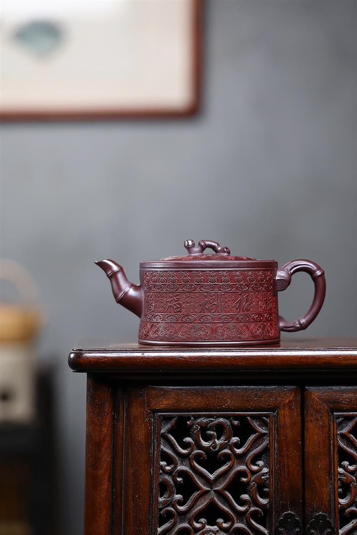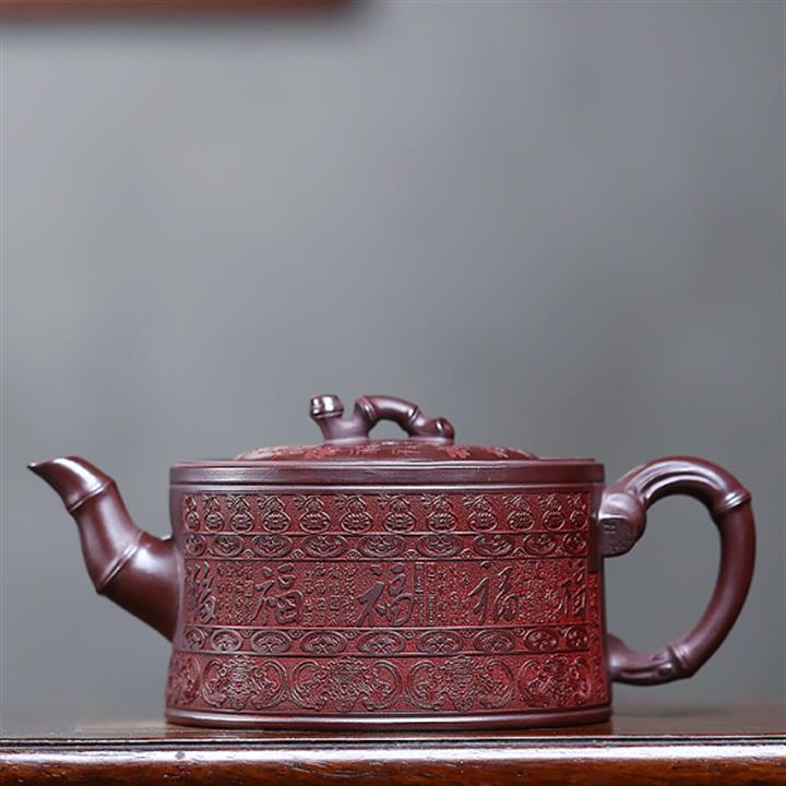 480cc原礦石紅泥百福竹節泡茶壺POT10002