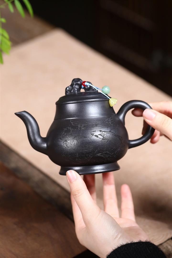 350cc原礦龍骨金砂山水提梁茶壺POT10012