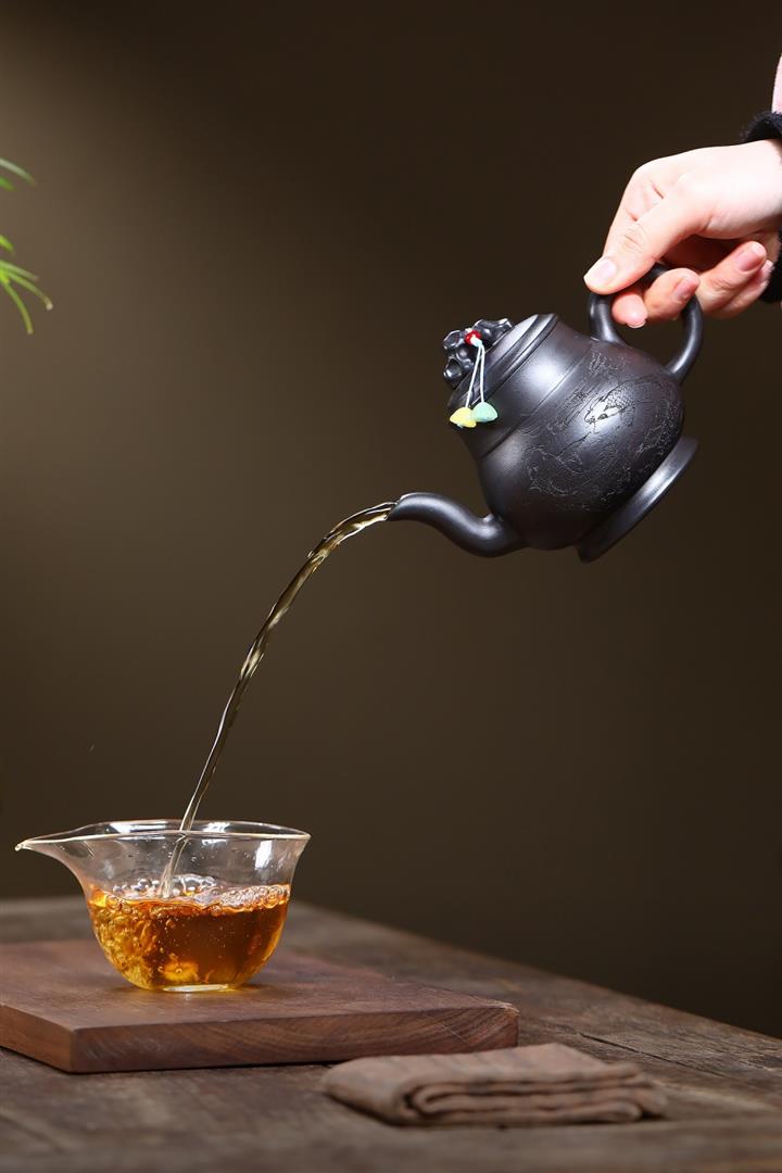 【泥料特點】砂土氣重,似淳實農民,日久使用,漸露鋒芒,養成變化,溫潤莊重。紫砂是壹種雙重氣孔結構的多孔性材質,氣孔微細,密度高。用紫砂壺沏茶,不失原味,且香不渙散,得茶之真香真味。紫砂使用越久,壺身色澤越發光亮照人,氣韻溫雅。紫砂壺長久使用器身會因撫摸擦拭,變得越發溫潤光澤。