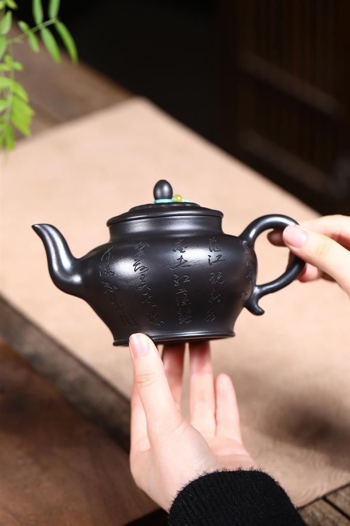 【作品介紹】此款壺形線條流暢,壺把,壺嘴,壺身壹氣呵成栩栩如生,是收藏把玩的好壺,泥料色澤古樸典雅,日久使用,漸露鋒芒,養成變化快,溫潤莊重,用其泡茶,使用的年代久,壺身就溫潤,泡出來的茶湯也就醇郁芳馨。