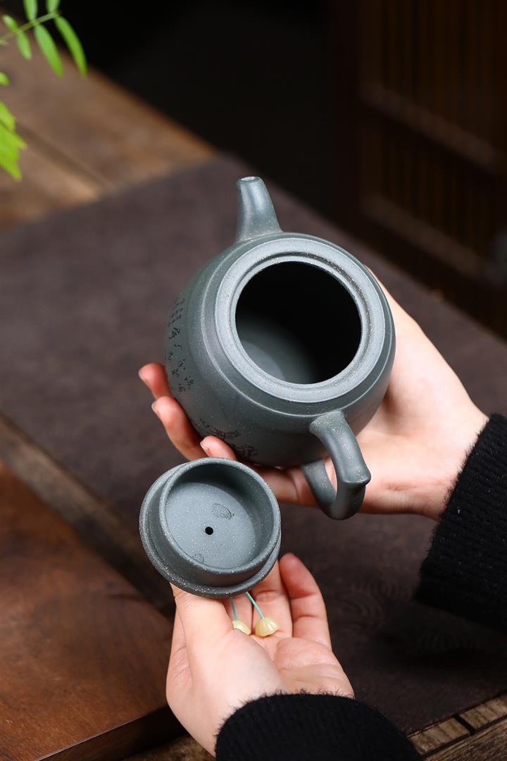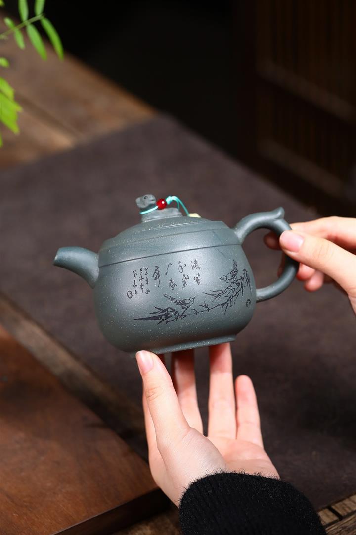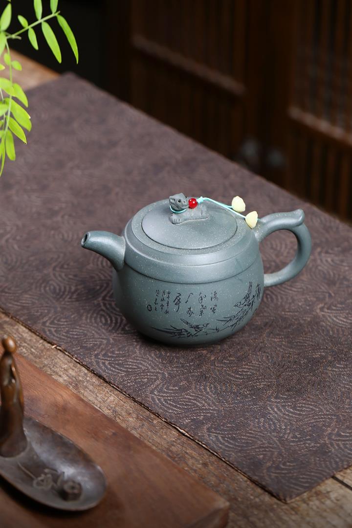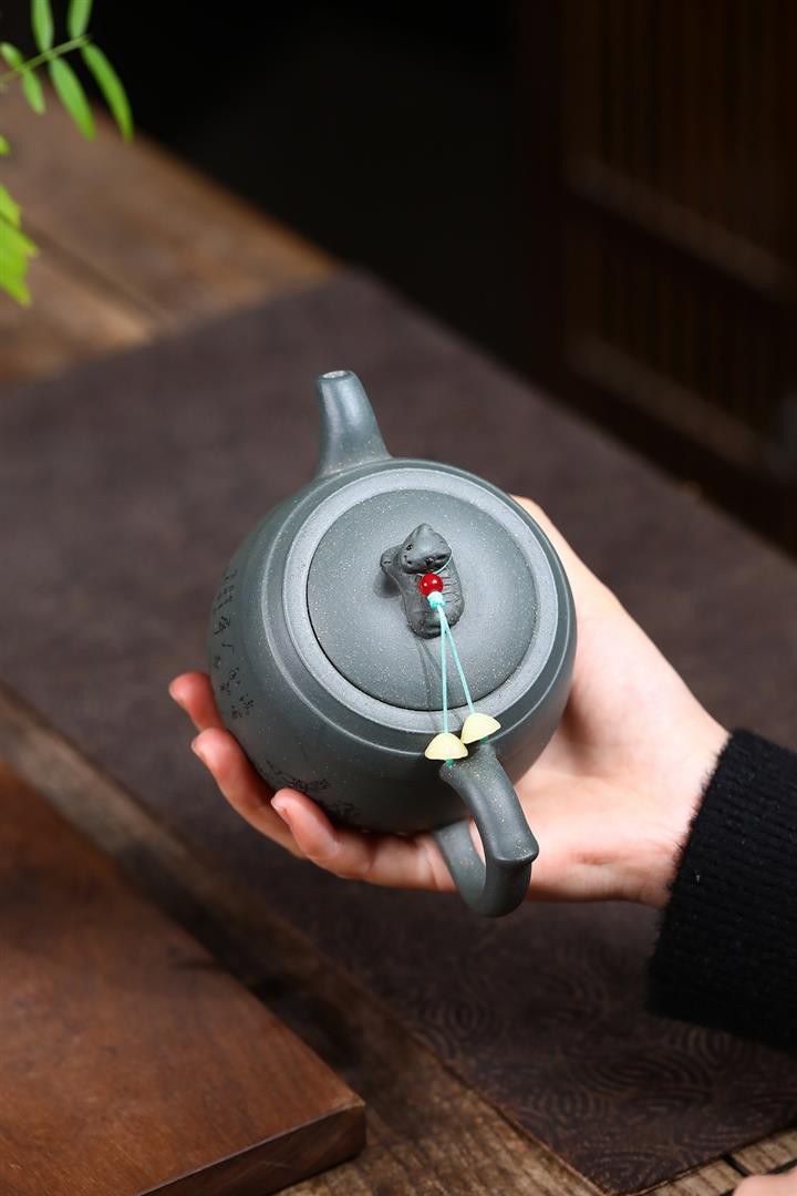 【作品介紹】此款壺形線條流暢,壺把,壺嘴,壺身壹氣呵成栩栩如生,是收藏把玩的好壺,泥料色澤古樸典雅,日久使用,漸露鋒芒,養成變化快,溫潤莊重,用其泡茶,使用的年代久,壺身就溫潤,泡出來的茶湯也就醇郁芳馨。