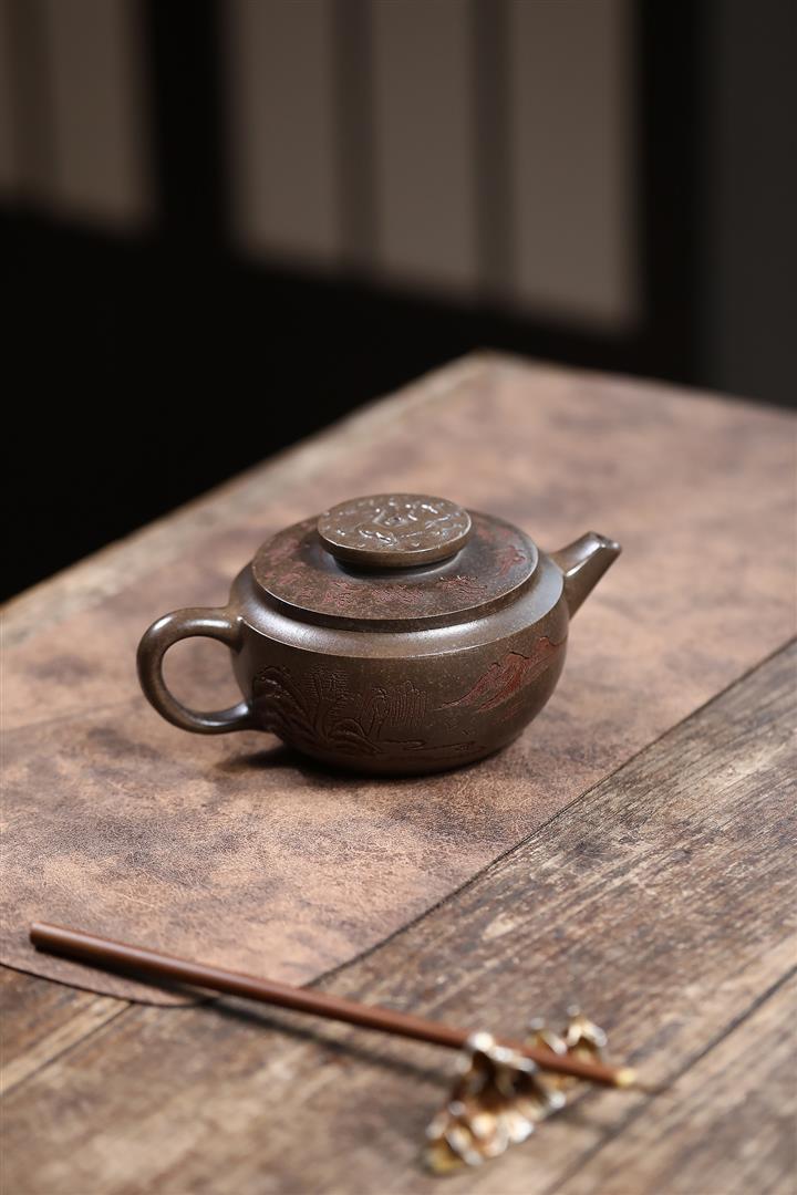 460cc原礦紫泥山水石瓢泡茶壺POT10028