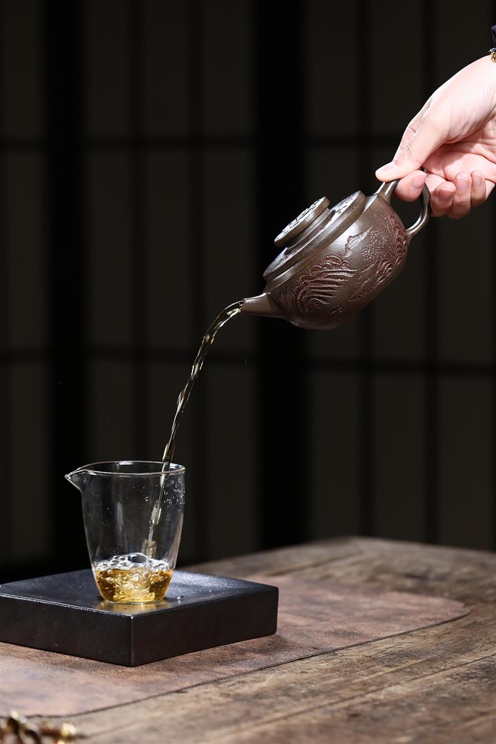 【泥料特點】砂土氣重,似淳實農民,日久使用,漸露鋒芒,養成變化,溫潤莊重。紫砂是壹種雙重氣孔結構的多孔性材質,氣孔微細,密度高。用紫砂壺沏茶,不失原味,且香不渙散,得茶之真香真味。紫砂使用越久,壺身色澤越發光亮照人,氣韻溫雅。紫砂壺長久使用器身會因撫摸擦拭,變得越發溫潤光澤。