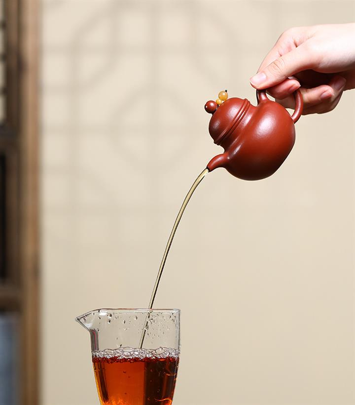 【泥料特點】砂土氣重,似淳實農民,日久使用,漸露鋒芒,養成變化,溫潤莊重。紫砂是壹種雙重氣孔結構的多孔性材質,氣孔微細,密度高。用紫砂壺沏茶,不失原味,且香不渙散,得茶之真香真味。紫砂使用越久,壺身色澤越發光亮照人,氣韻溫雅。紫砂壺長久使用器身會因撫摸擦拭,變得越發溫潤光澤。