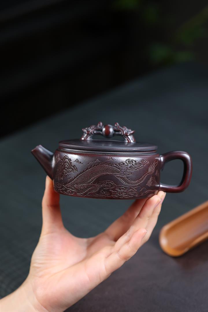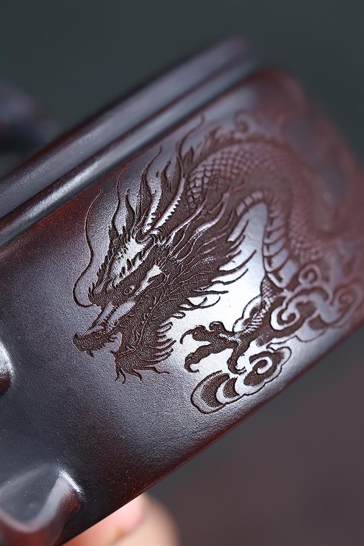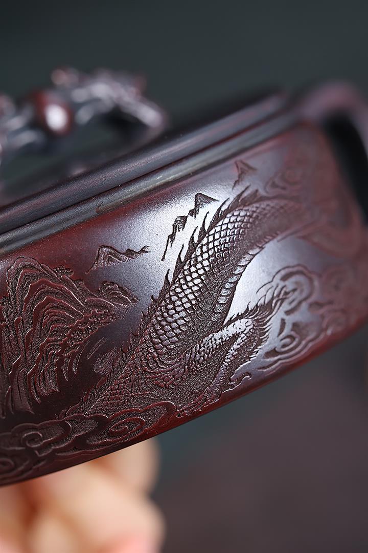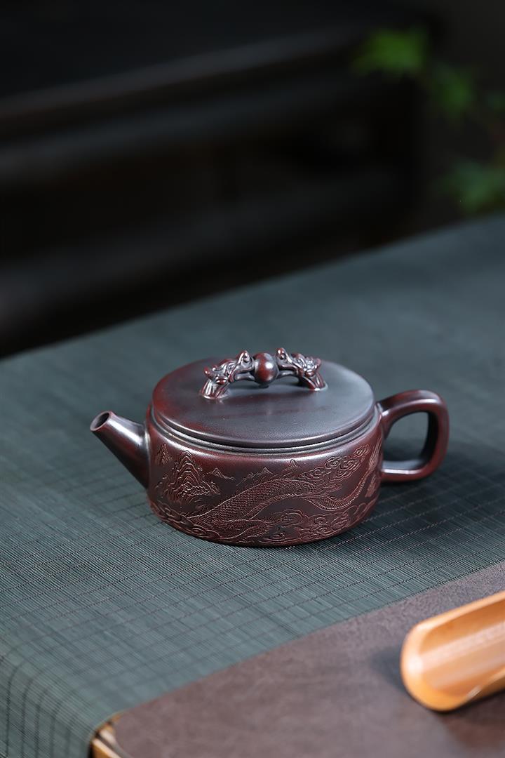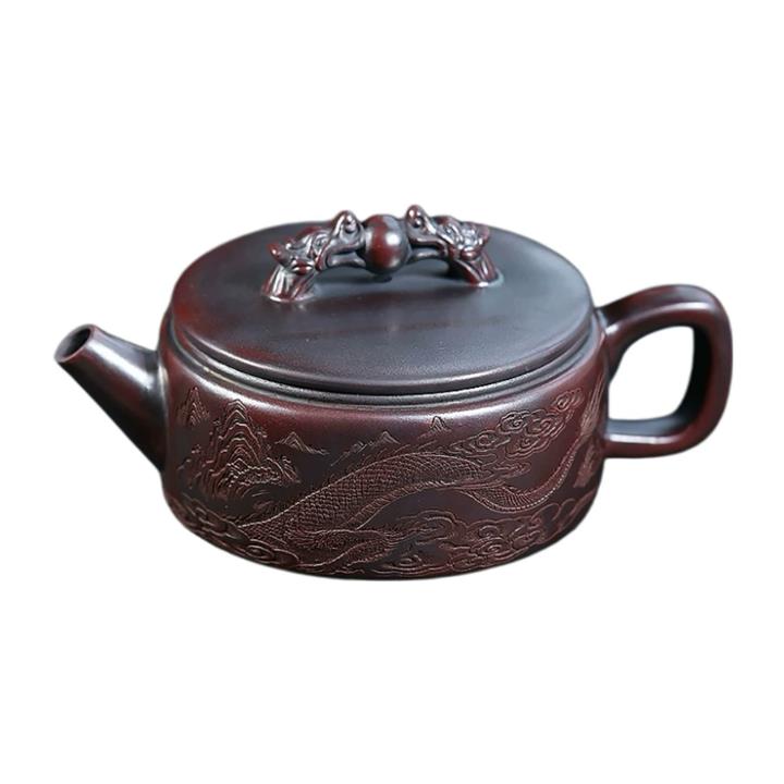 260cc原礦古烏泥雙龍戲珠漢瓦泡茶壺POT10027