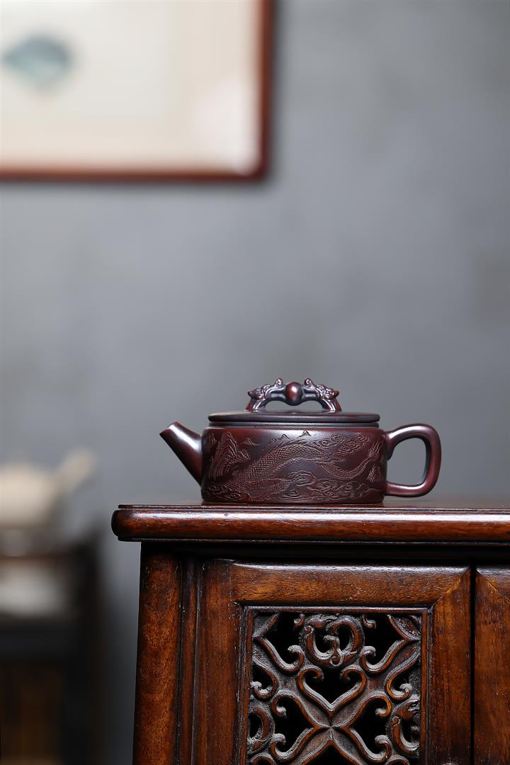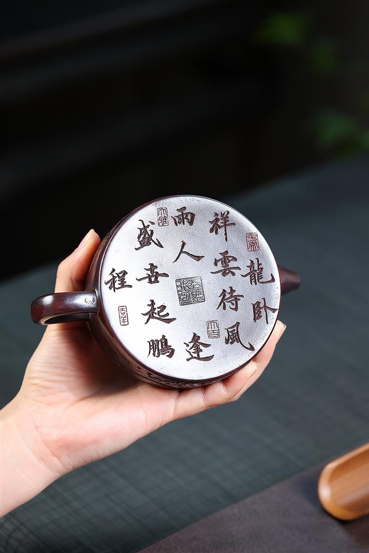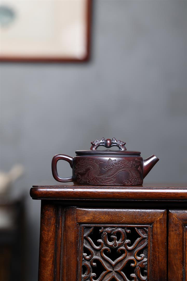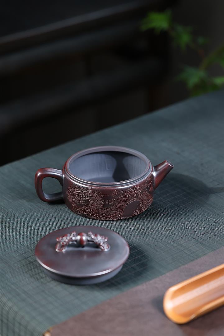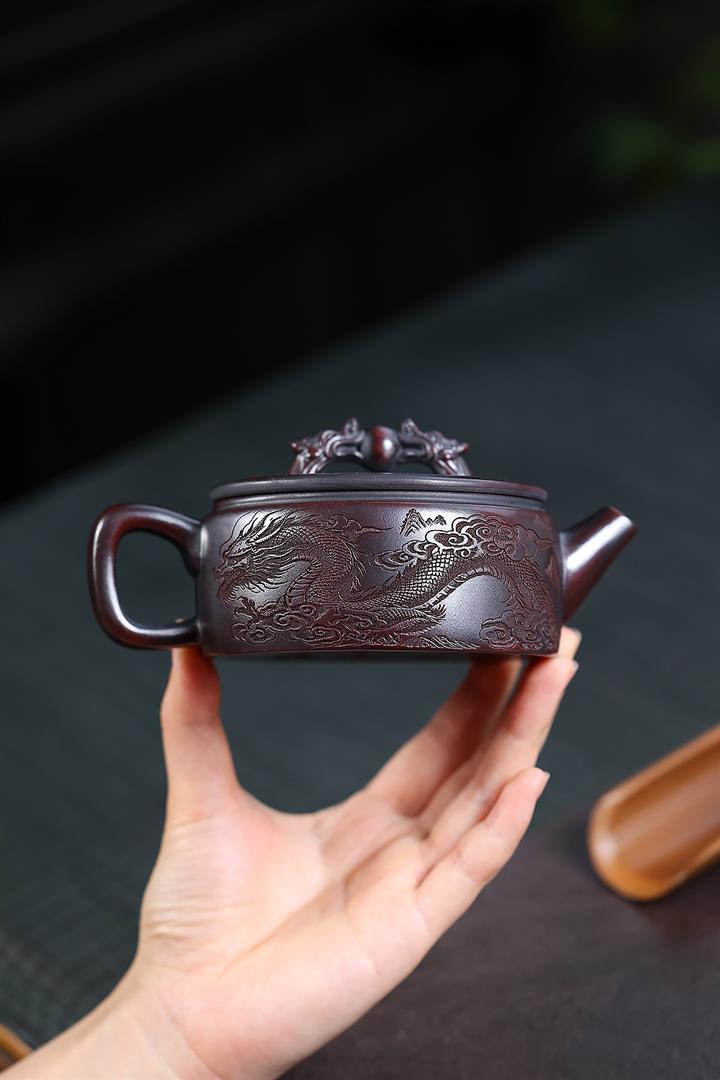 260cc原礦古烏泥雙龍戲珠漢瓦泡茶壺POT10027