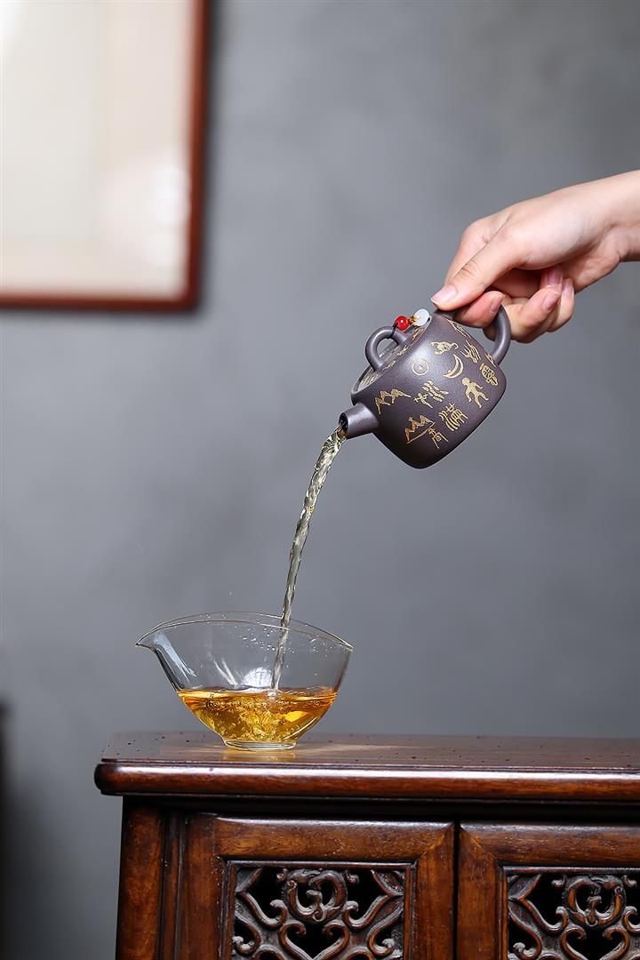 【泥料特點】砂土氣重,似淳實農民,日久使用,漸露鋒芒,養成變化,溫潤莊重。紫砂是壹種雙重氣孔結構的多孔性材質,氣孔微細,密度高。用紫砂壺沏茶,不失原味,且香不渙散,得茶之真香真味。紫砂使用越久,壺身色澤越發光亮照人,氣韻溫雅。紫砂壺長久使用器身會因撫摸擦拭,變得越發溫潤光澤。