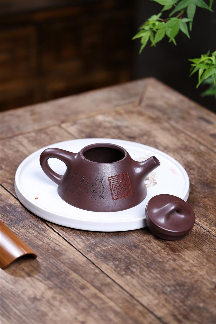 【泥料特點】砂土氣重,似淳實農民,日久使用,漸露鋒芒,養成變化,溫潤莊重。紫砂是壹種雙重氣孔結構的多孔性材質,氣孔微細,密度高。用紫砂壺沏茶,不失原味,且香不渙散,得茶之真香真味。紫砂使用越久,壺身色澤越發光亮照人,氣韻溫雅。紫砂壺長久使用器身會因撫摸擦拭,變得越發溫潤光澤。
