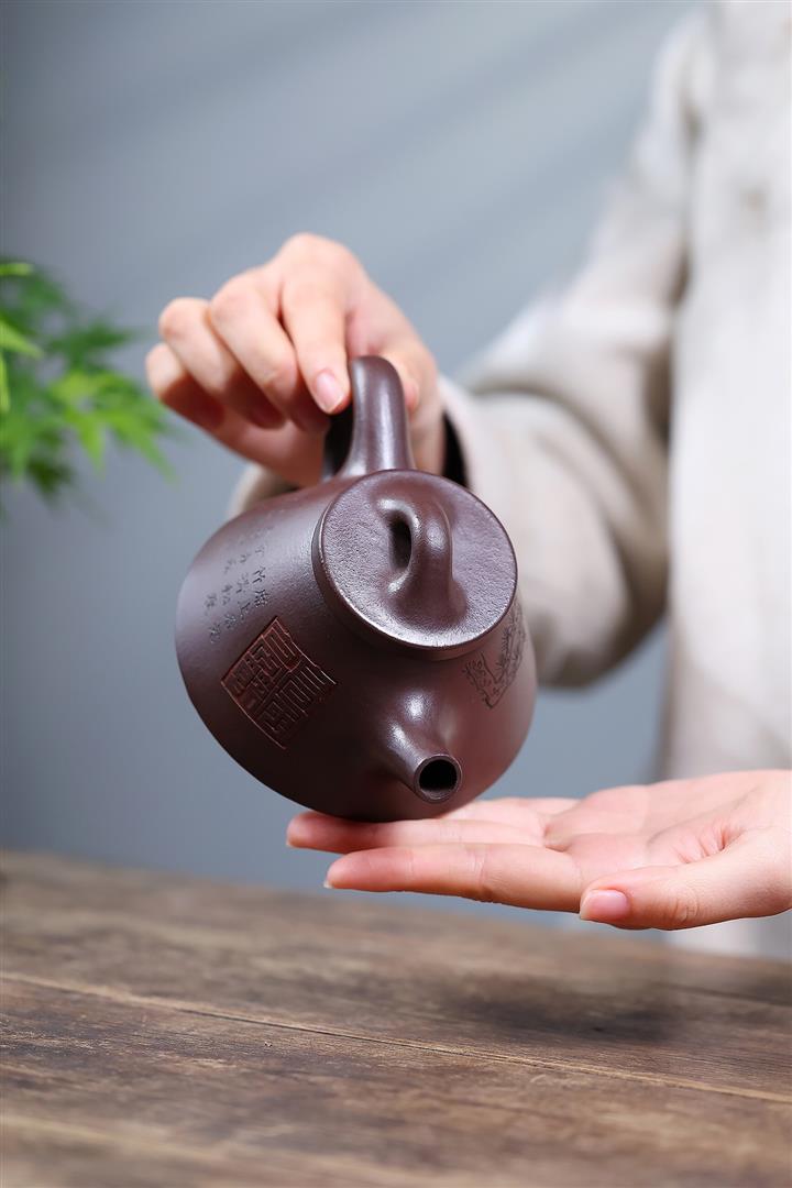 【作品介紹】此款壺形線條流暢,壺把,壺嘴,壺身壹氣呵成栩栩如生,是收藏把玩的好壺,泥料色澤古樸典雅,日久使用,漸露鋒芒,養成變化快,溫潤莊重,用其泡茶,使用的年代久,壺身就溫潤,泡出來的茶湯也就醇郁芳馨。