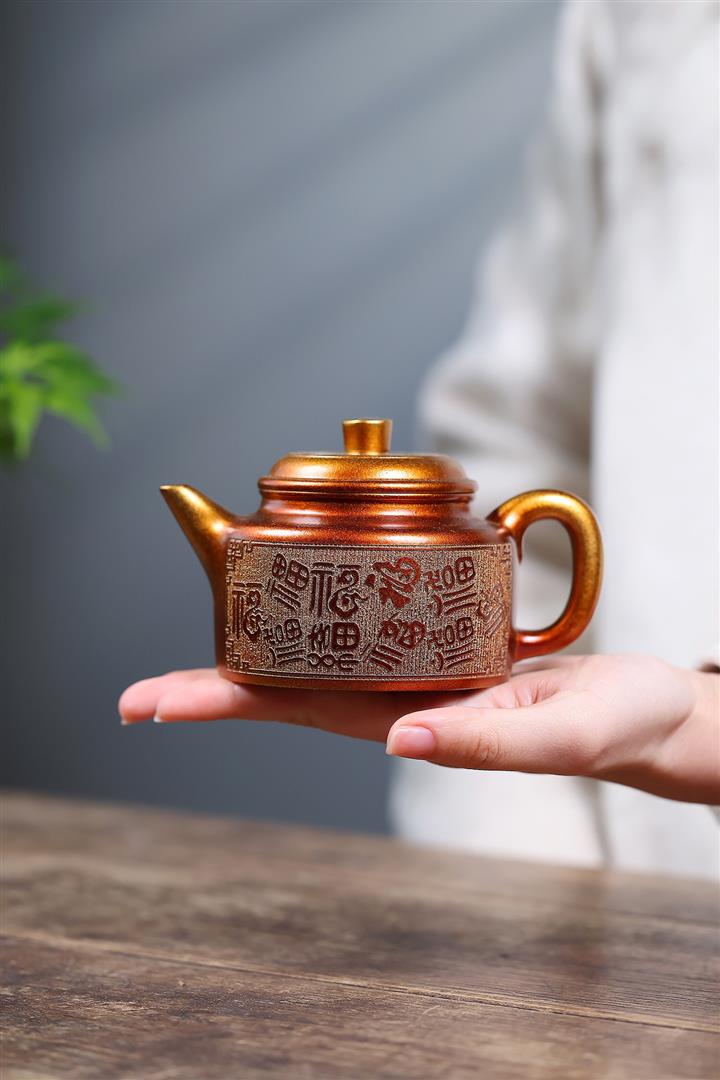 280cc原礦朱泥描金掇只泡茶壺POT10036