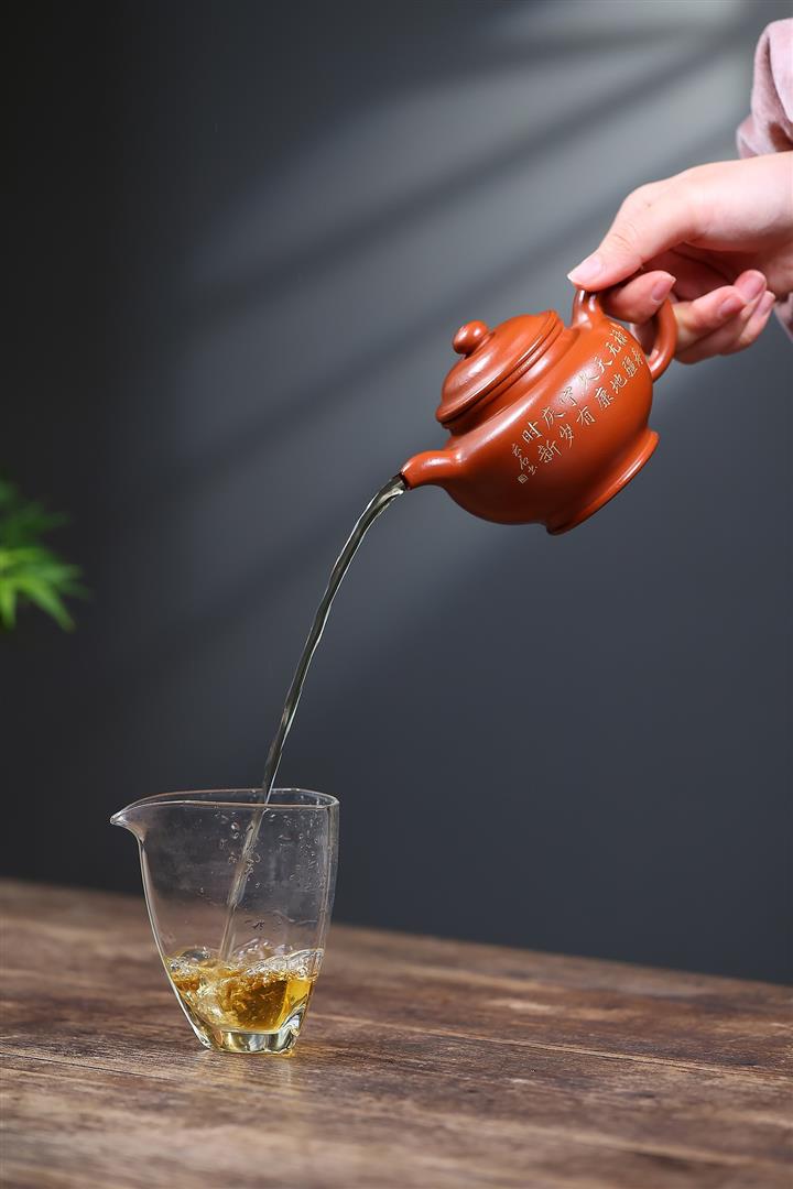 【泥料特點】砂土氣重,似淳實農民,日久使用,漸露鋒芒,養成變化,溫潤莊重。紫砂是壹種雙重氣孔結構的多孔性材質,氣孔微細,密度高。用紫砂壺沏茶,不失原味,且香不渙散,得茶之真香真味。紫砂使用越久,壺身色澤越發光亮照人,氣韻溫雅。紫砂壺長久使用器身會因撫摸擦拭,變得越發溫潤光澤。