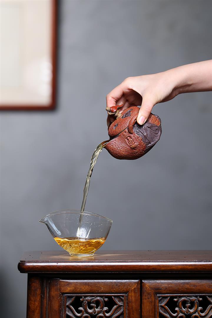 【泥料特點】砂土氣重,似淳實農民,日久使用,漸露鋒芒,養成變化,溫潤莊重。紫砂是壹種雙重氣孔結構的多孔性材質,氣孔微細,密度高。用紫砂壺沏茶,不失原味,且香不渙散,得茶之真香真味。紫砂使用越久,壺身色澤越發光亮照人,氣韻溫雅。紫砂壺長久使用器身會因撫摸擦拭,變得越發溫潤光澤。
