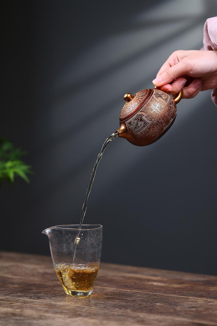 【泥料特點】砂土氣重,似淳實農民,日久使用,漸露鋒芒,養成變化,溫潤莊重。紫砂是壹種雙重氣孔結構的多孔性材質,氣孔微細,密度高。用紫砂壺沏茶,不失原味,且香不渙散,得茶之真香真味。紫砂使用越久,壺身色澤越發光亮照人,氣韻溫雅。紫砂壺長久使用器身會因撫摸擦拭,變得越發溫潤光澤。