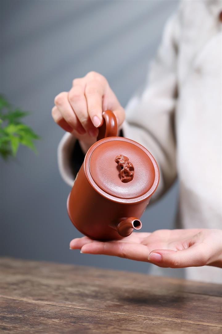 【泥料特點】砂土氣重,似淳實農民,日久使用,漸露鋒芒,養成變化,溫潤莊重。紫砂是壹種雙重氣孔結構的多孔性材質,氣孔微細,密度高。用紫砂壺沏茶,不失原味,且香不渙散,得茶之真香真味。紫砂使用越久,壺身色澤越發光亮照人,氣韻溫雅。紫砂壺長久使用器身會因撫摸擦拭,變得越發溫潤光澤。