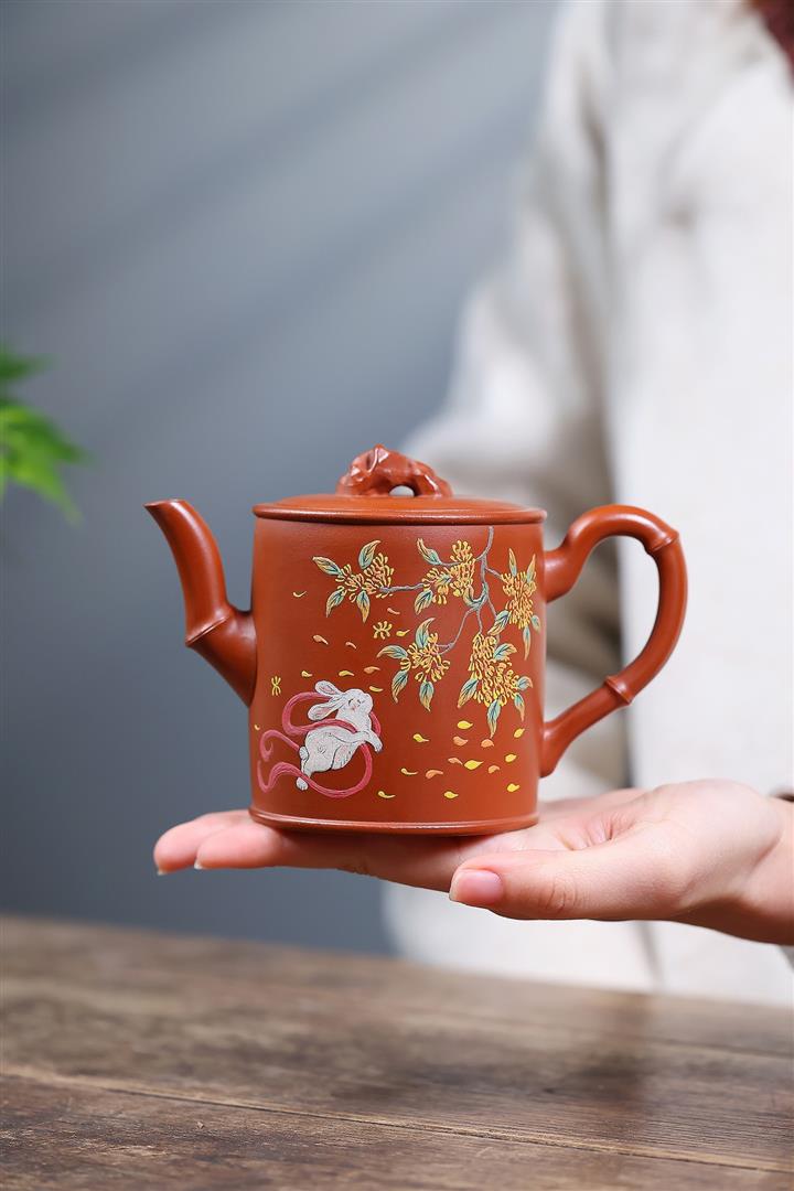 300cc原礦趙莊朱泥泥繪竹段泡茶壺POT10059