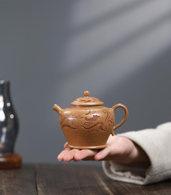 【作品介紹】此款壺形線條流暢,壺把,壺嘴,壺身壹氣呵成栩栩如生,是收藏把玩的好壺,泥料色澤古樸典雅,日久使用,漸露鋒芒,養成變化快,溫潤莊重,用其泡茶,使用的年代久,壺身就溫潤,泡出來的茶湯也就醇郁芳馨。