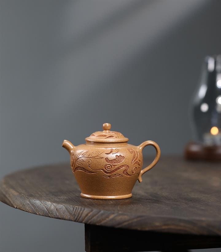 【泥料特點】砂土氣重,似淳實農民,日久使用,漸露鋒芒,養成變化,溫潤莊重。紫砂是壹種雙重氣孔結構的多孔性材質,氣孔微細,密度高。用紫砂壺沏茶,不失原味,且香不渙散,得茶之真香真味。紫砂使用越久,壺身色澤越發光亮照人,氣韻溫雅。紫砂壺長久使用器身會因撫摸擦拭,變得越發溫潤光澤。