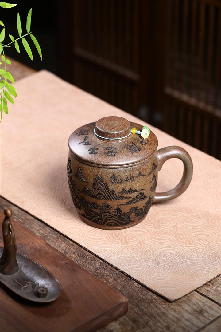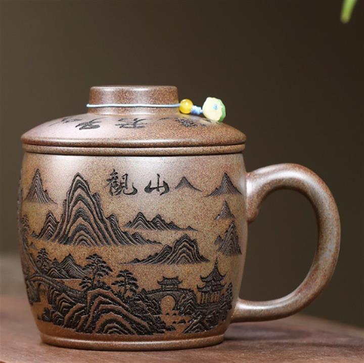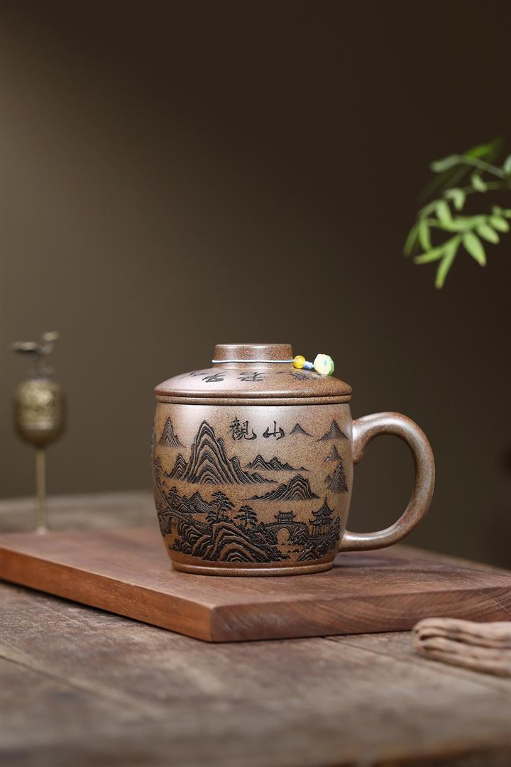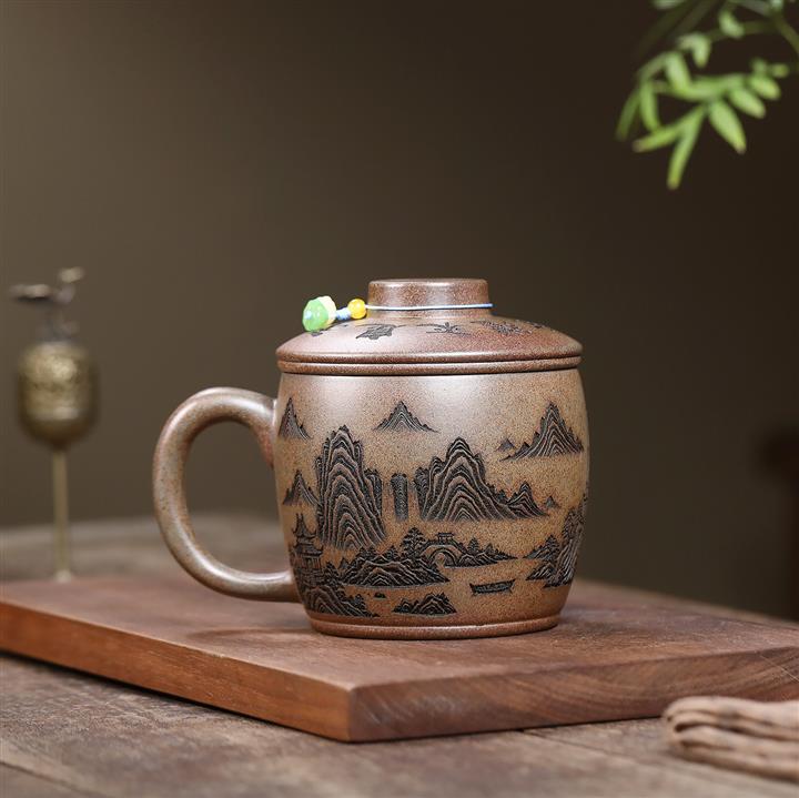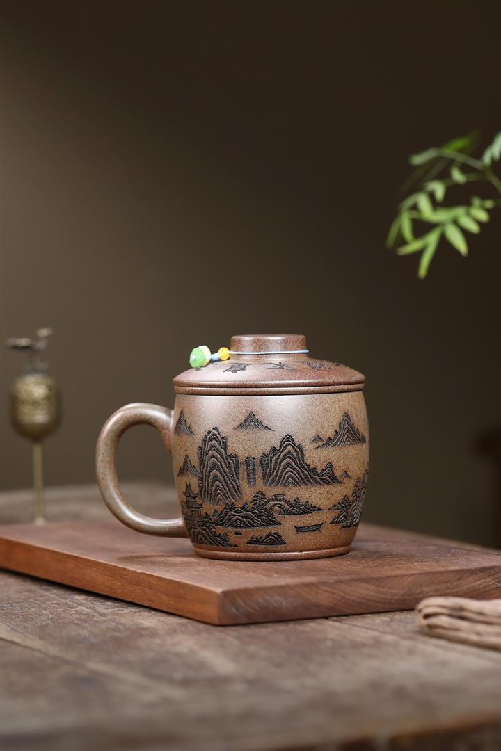 450cc原礦紫泥竹影蓋杯茶杯POT10067