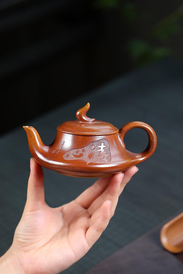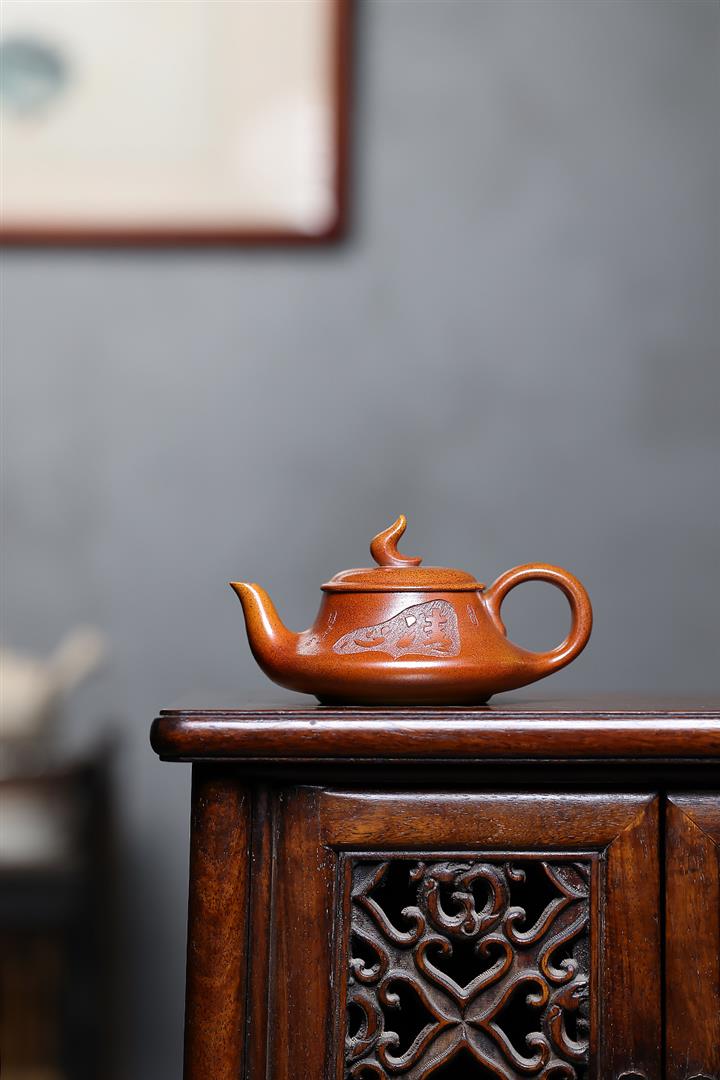 【作品介紹】此款壺形線條流暢,壺把,壺嘴,壺身壹氣呵成栩栩如生,是收藏把玩的好壺,泥料色澤古樸典雅,日久使用,漸露鋒芒,養成變化快,溫潤莊重,用其泡茶,使用的年代久,壺身就溫潤,泡出來的茶湯也就醇郁芳馨。