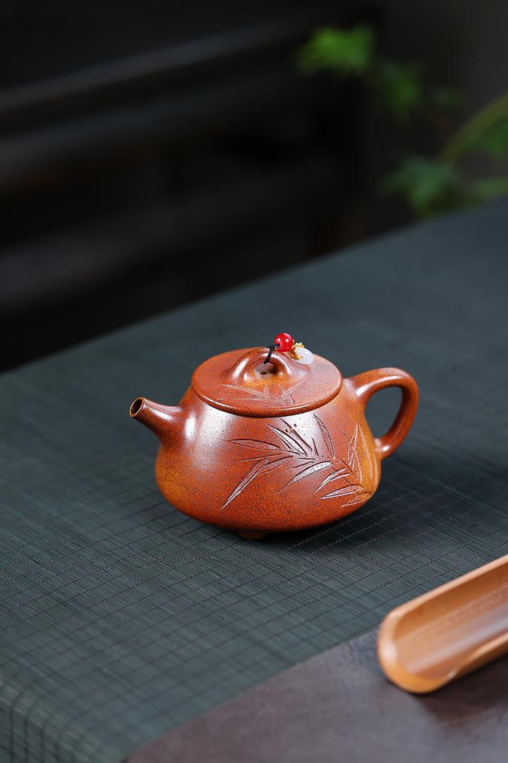 240cc原礦段泥火雲燒竹韻高瓢泡茶壺POT10071