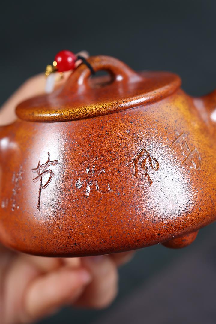 【作品介紹】此款壺形線條流暢,壺把,壺嘴,壺身壹氣呵成栩栩如生,是收藏把玩的好壺,泥料色澤古樸典雅,日久使用,漸露鋒芒,養成變化快,溫潤莊重,用其泡茶,使用的年代久,壺身就溫潤,泡出來的茶湯也就醇郁芳馨。