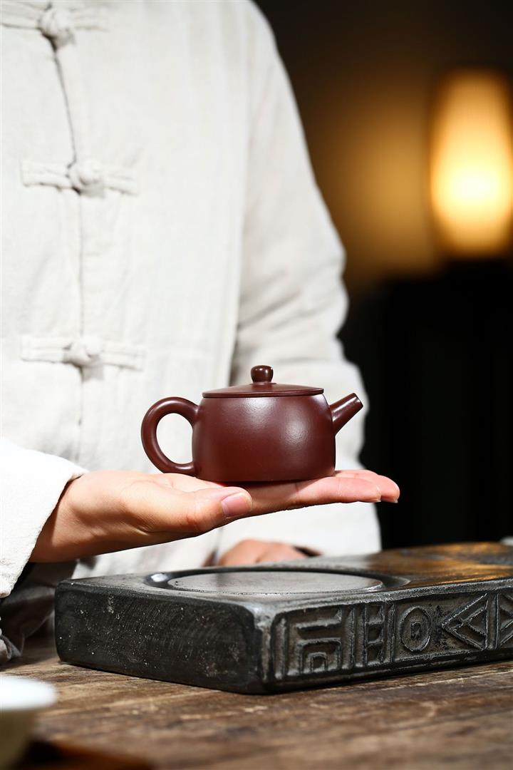 【作品介紹】作品深蘊內涵,典雅,工藝,型用完備,深受國內外藏家和紫砂愛好者喜愛 【泥料特點】砂土氣重,似淳實農民,日久使用,漸露鋒芒,養成變化甚大,溫潤莊重。線條優美自然,嘴把搭配協調,身桶配上細長的把搭配,更顯優雅高貴,