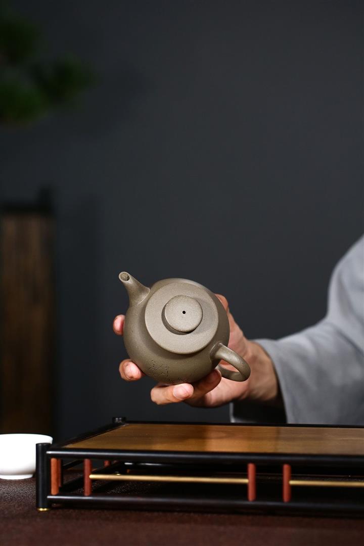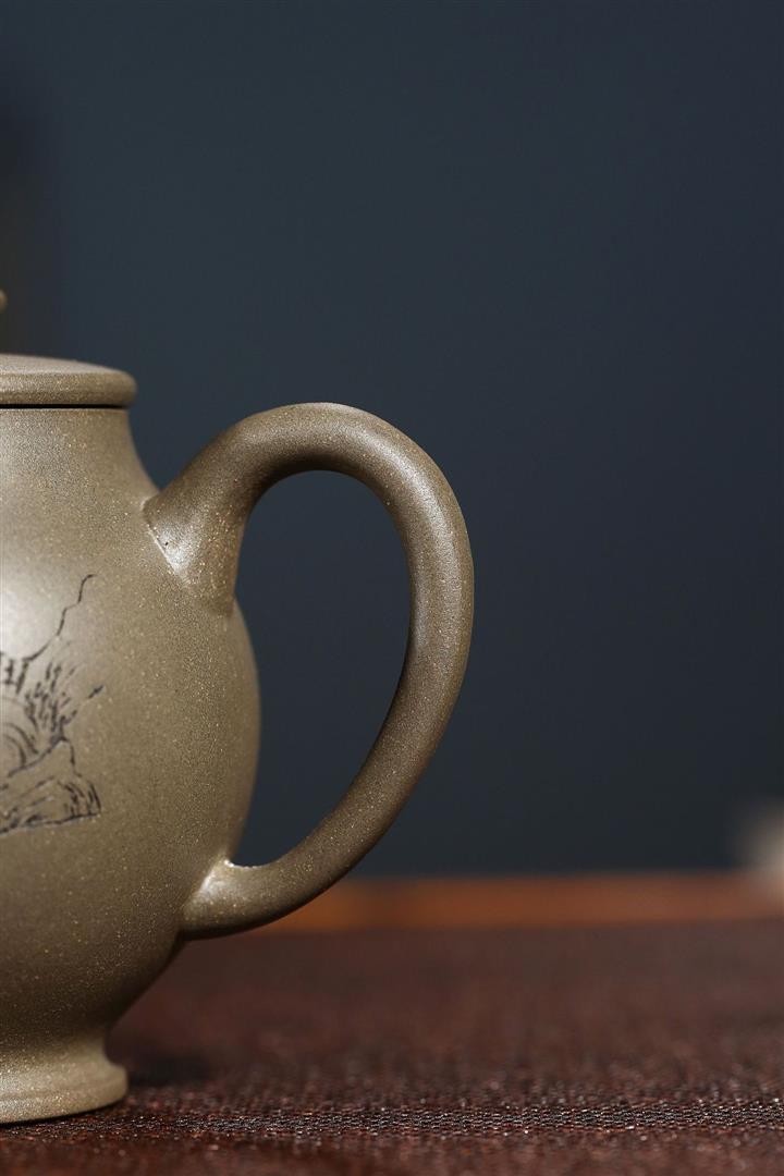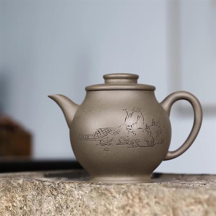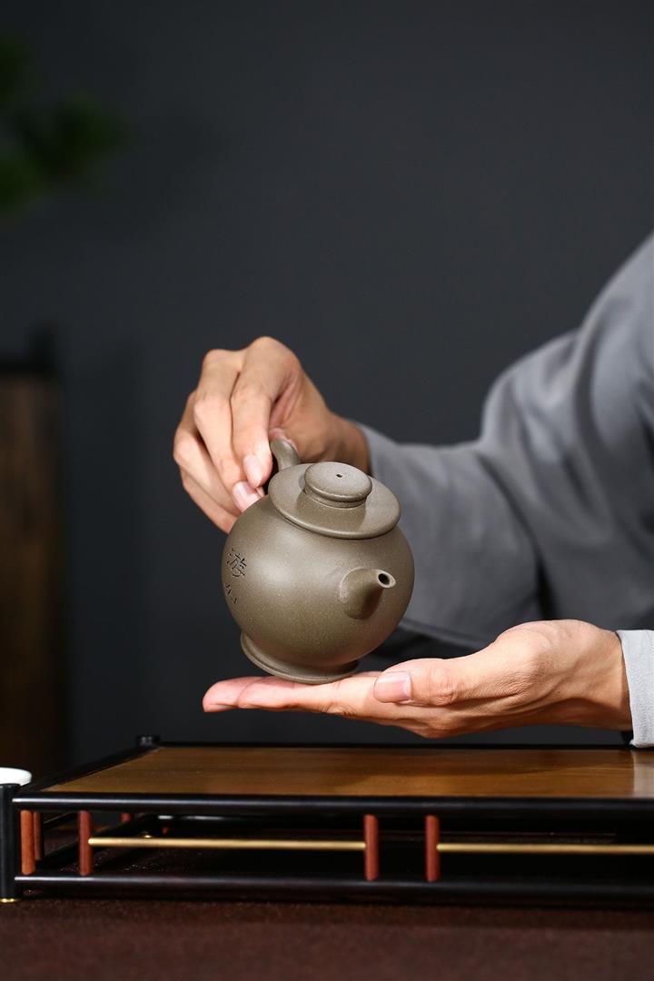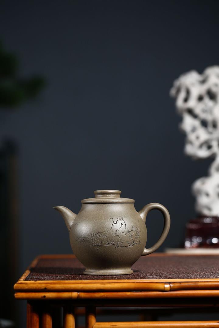 原礦青灰段泥純手刻繪圓珠壺功夫套裝茶具紫砂壺290cc POT2720