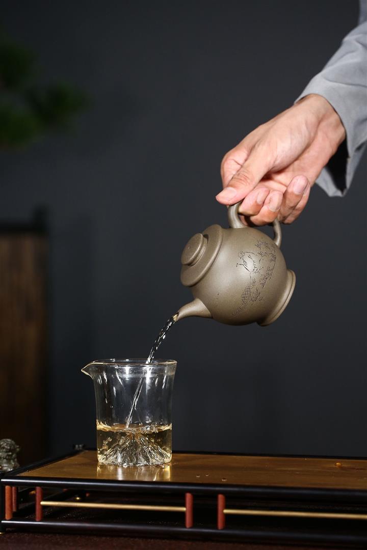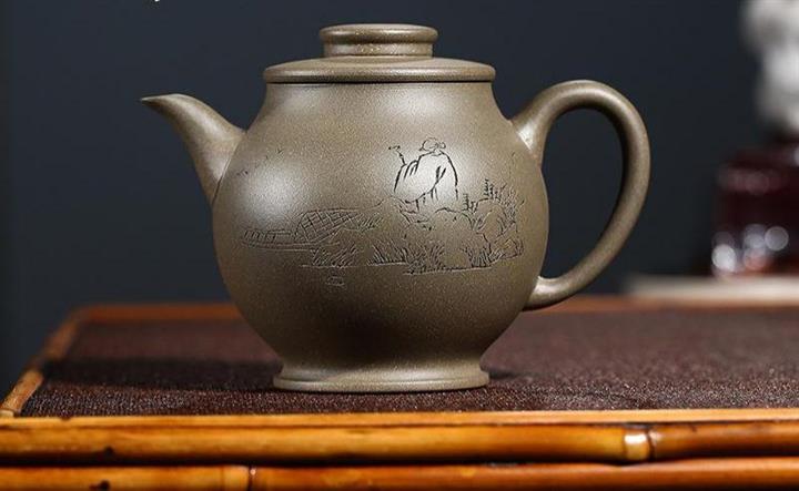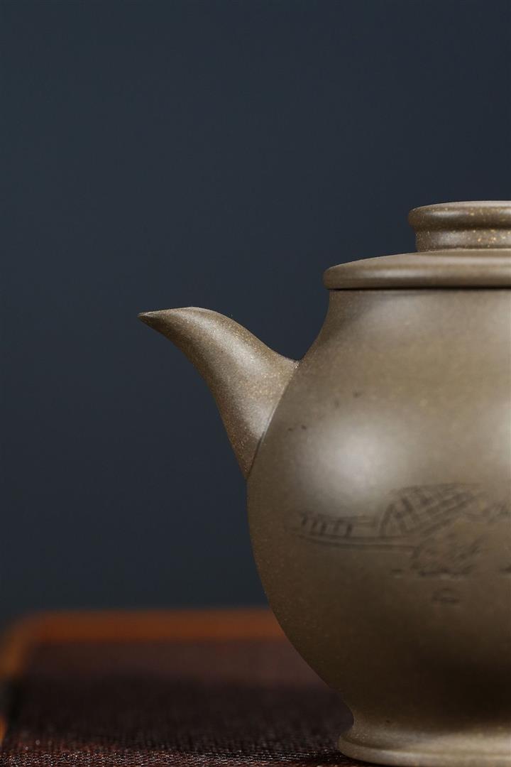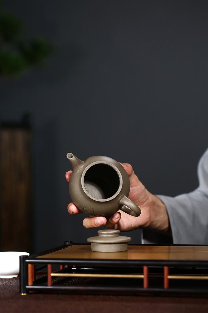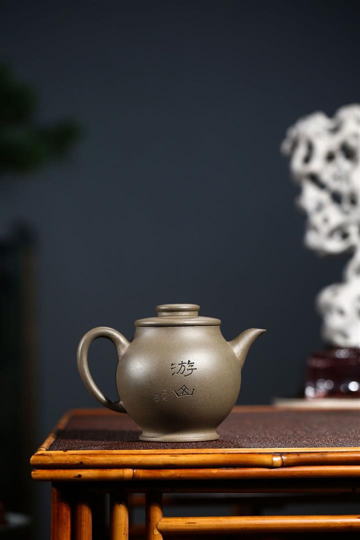 原礦青灰段泥純手刻繪圓珠壺功夫套裝茶具紫砂壺290cc POT2720