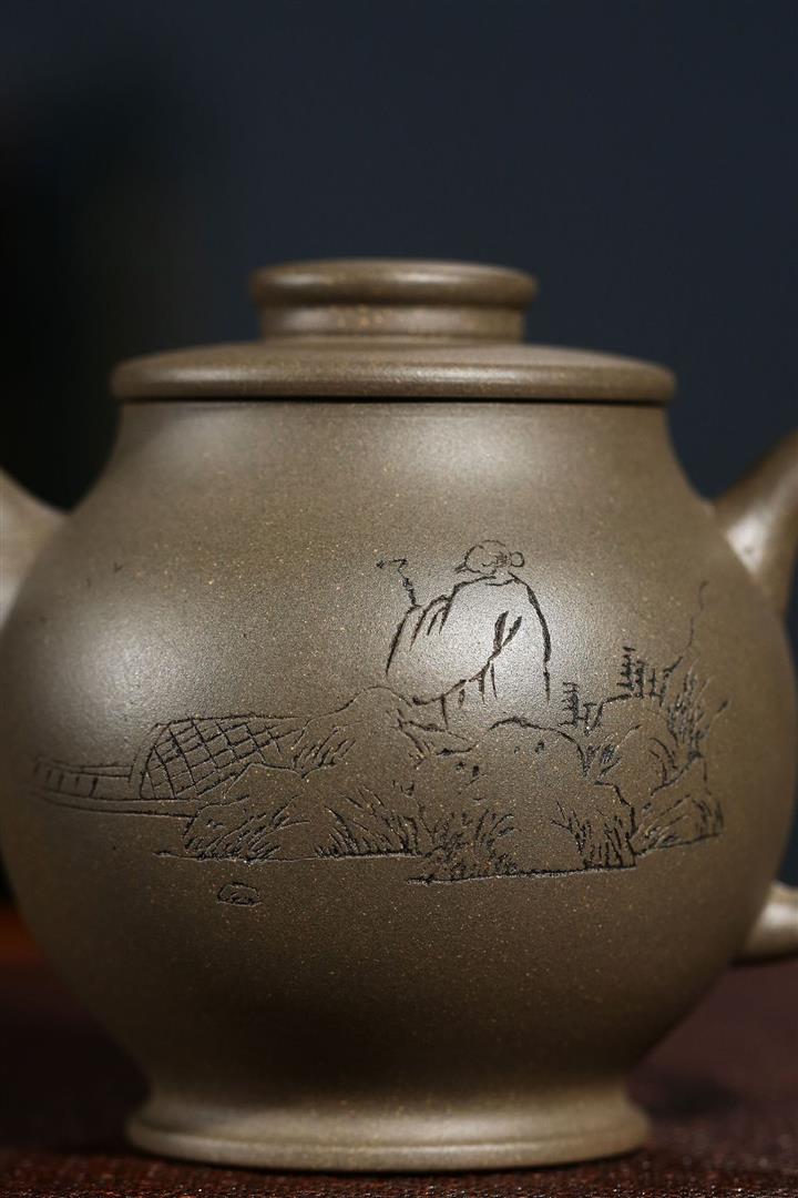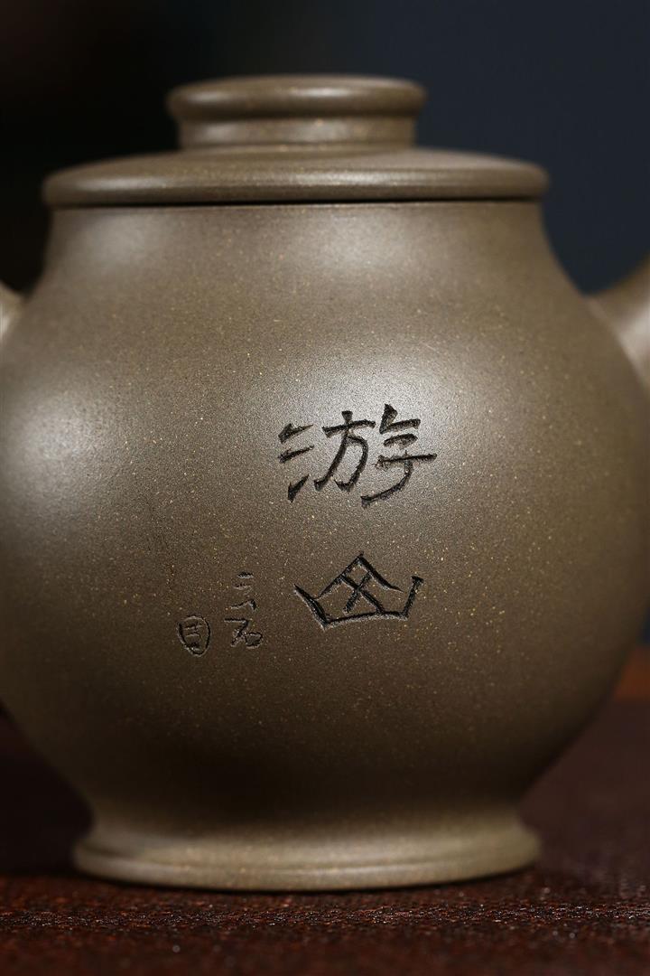 本山綠泥紫砂馮桂林知足常樂壺