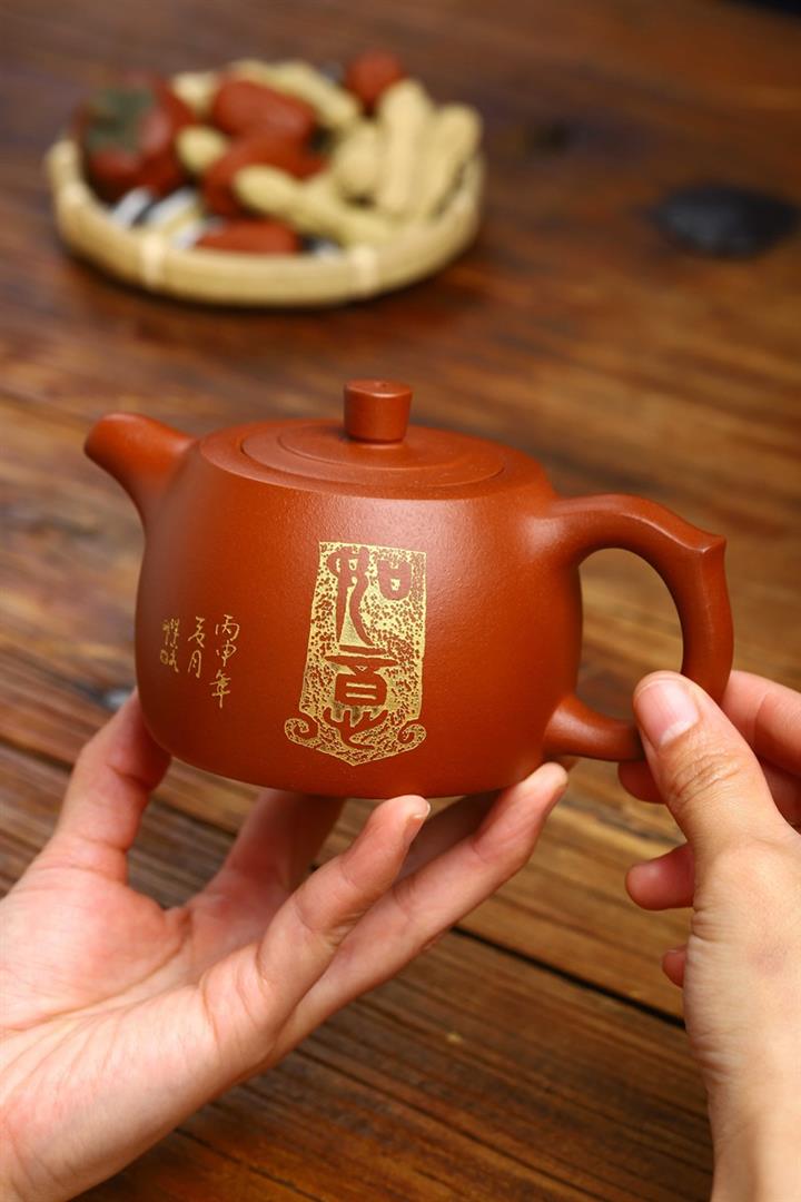 全手工刻字如意井欄壺功夫泡茶壺紫砂壺280CC POT2748