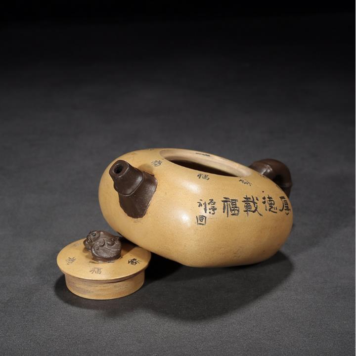 老紫泥紫砂手工如意水平茶壺 Pot3532