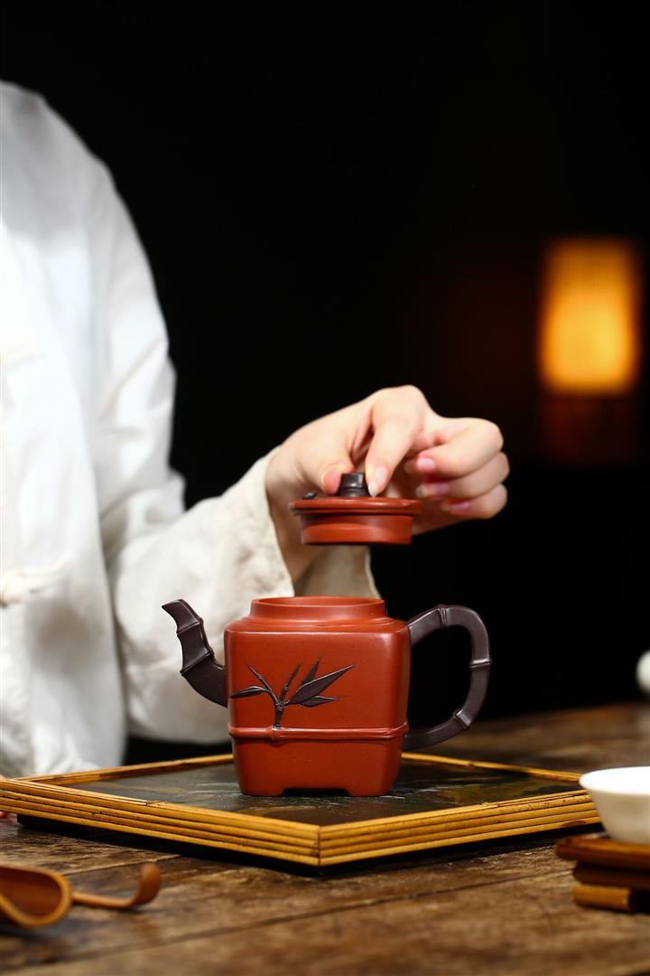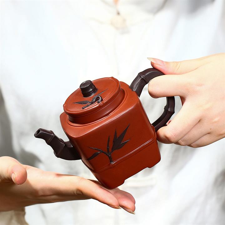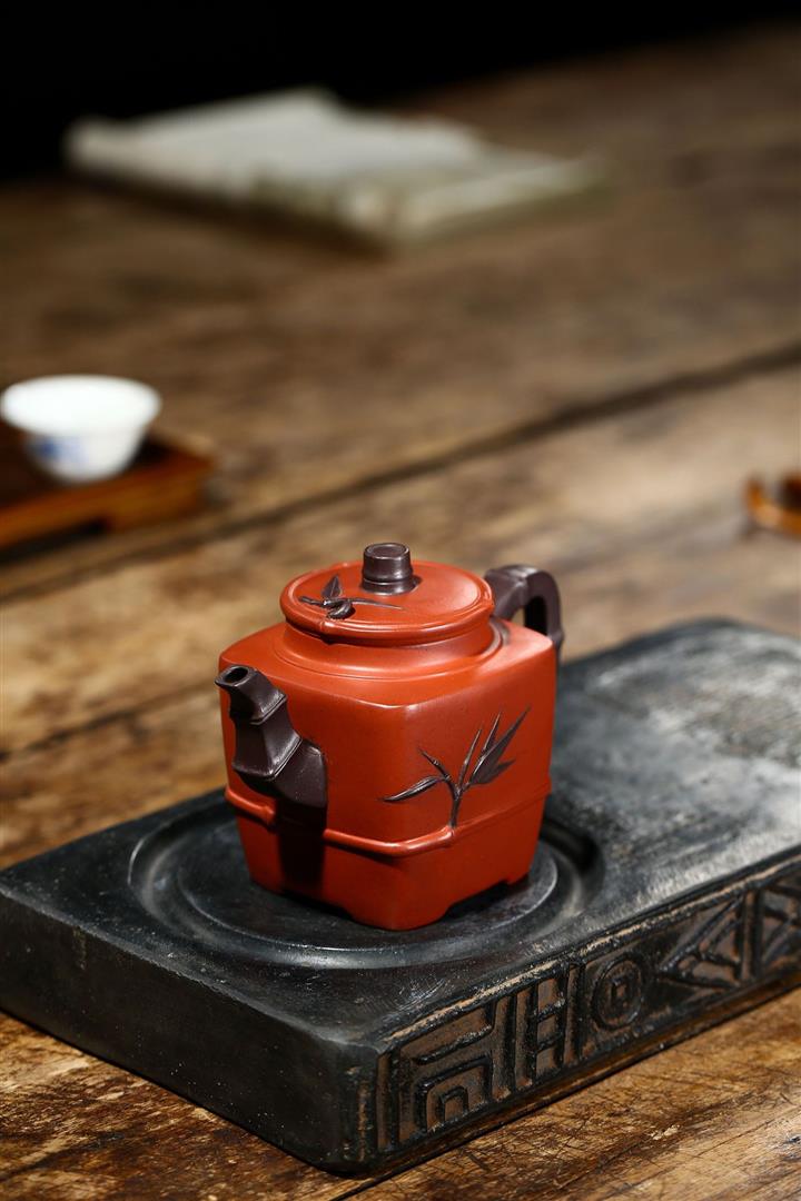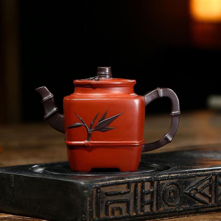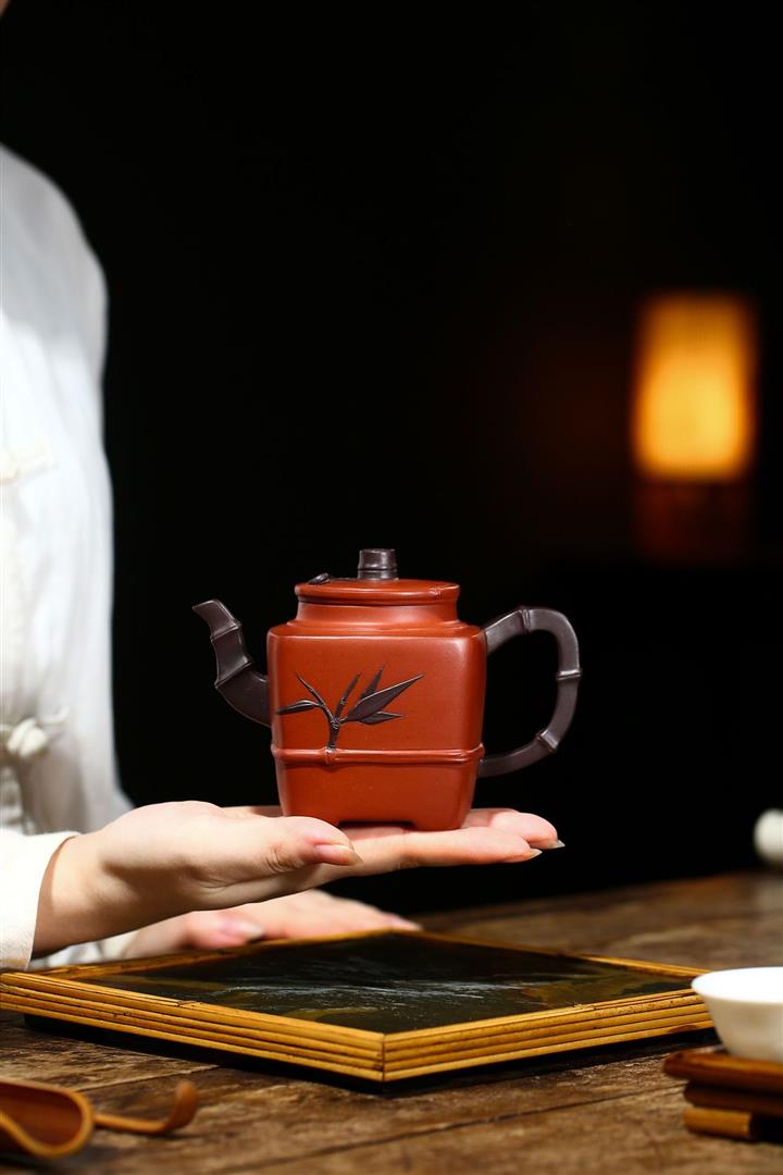 原礦清水泥茶壺渾四方貼竹葉方器茶壺紫砂壺290cc POT3322