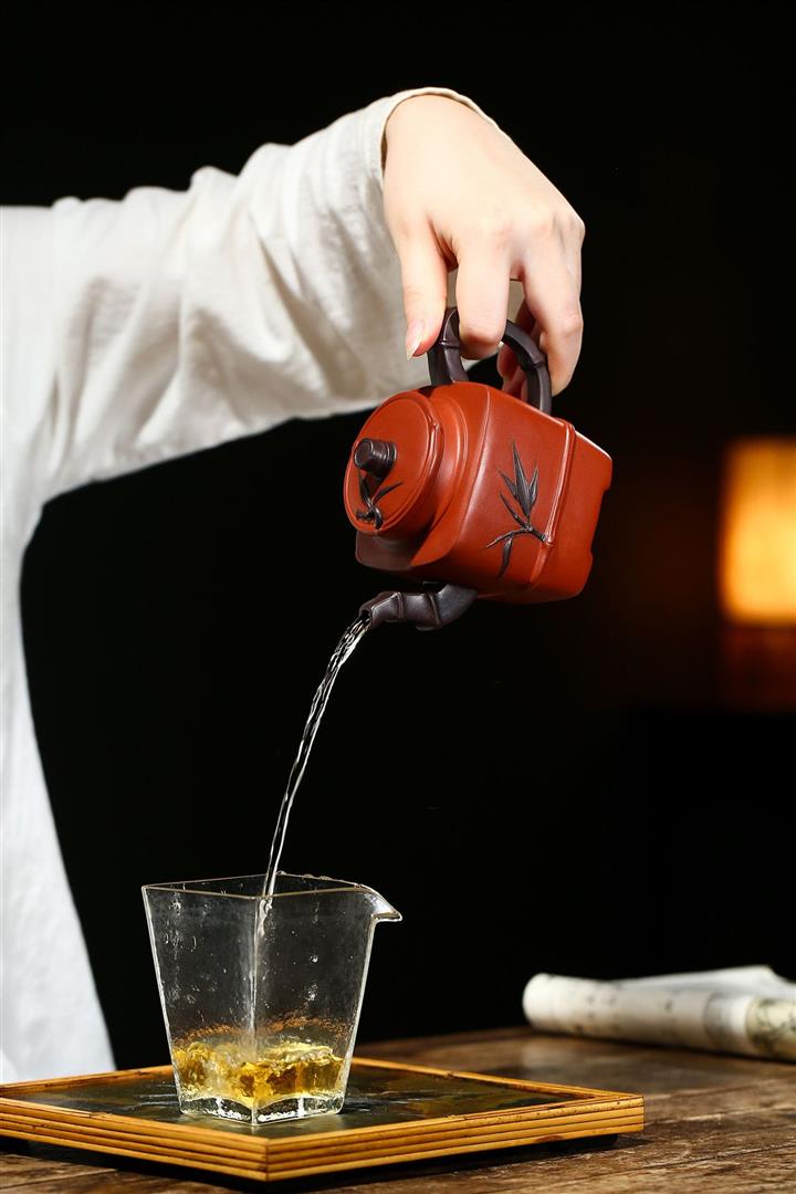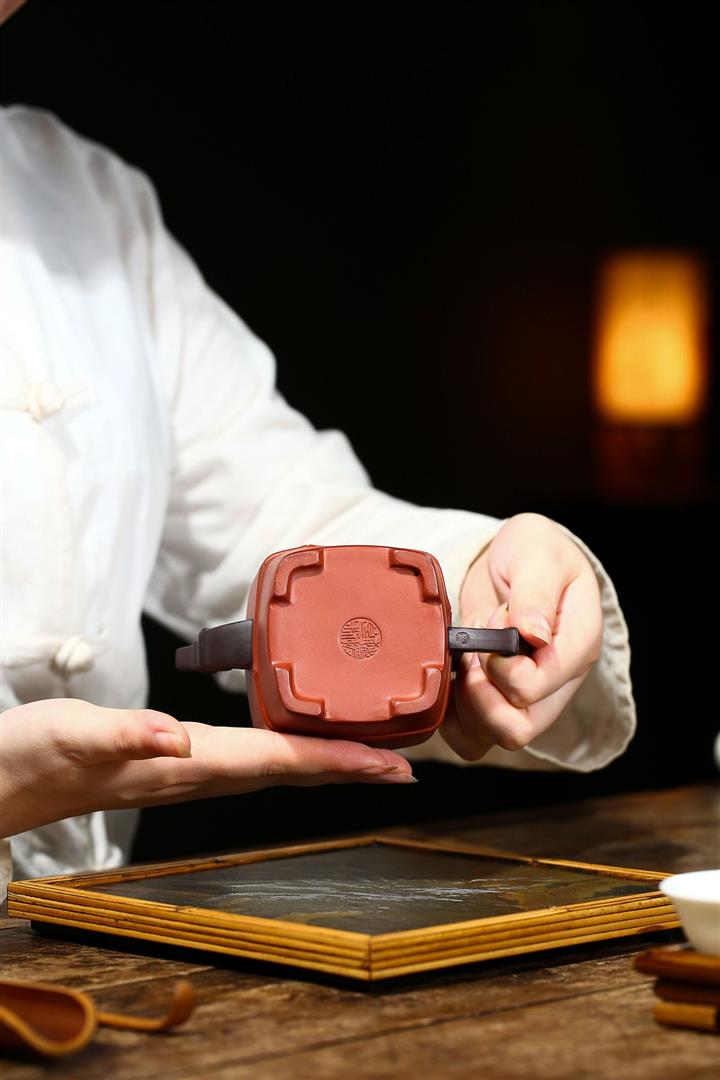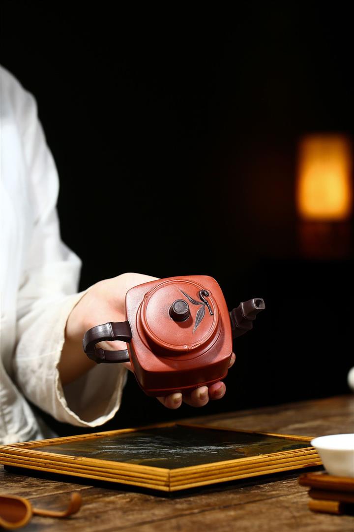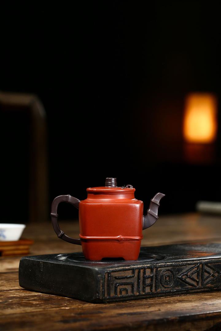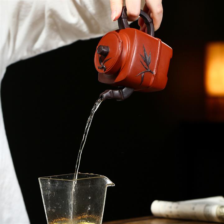原礦清水泥茶壺渾四方貼竹葉方器茶壺紫砂壺290cc POT3322