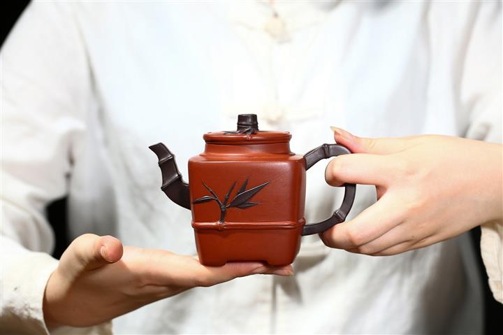 【作品介紹】作品深蘊內涵,典雅,工藝,型用完備,深受國內外藏家和紫砂愛好者喜愛 【泥料特點】砂土氣重,似淳實農民,日久使用,漸露鋒芒,養成變化甚大,溫潤莊重。線條優美自然,嘴把搭配協調,身桶配上細長的把搭配,更顯優雅高貴