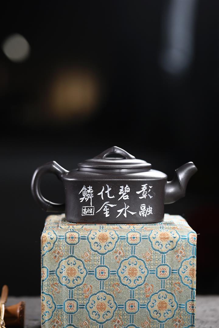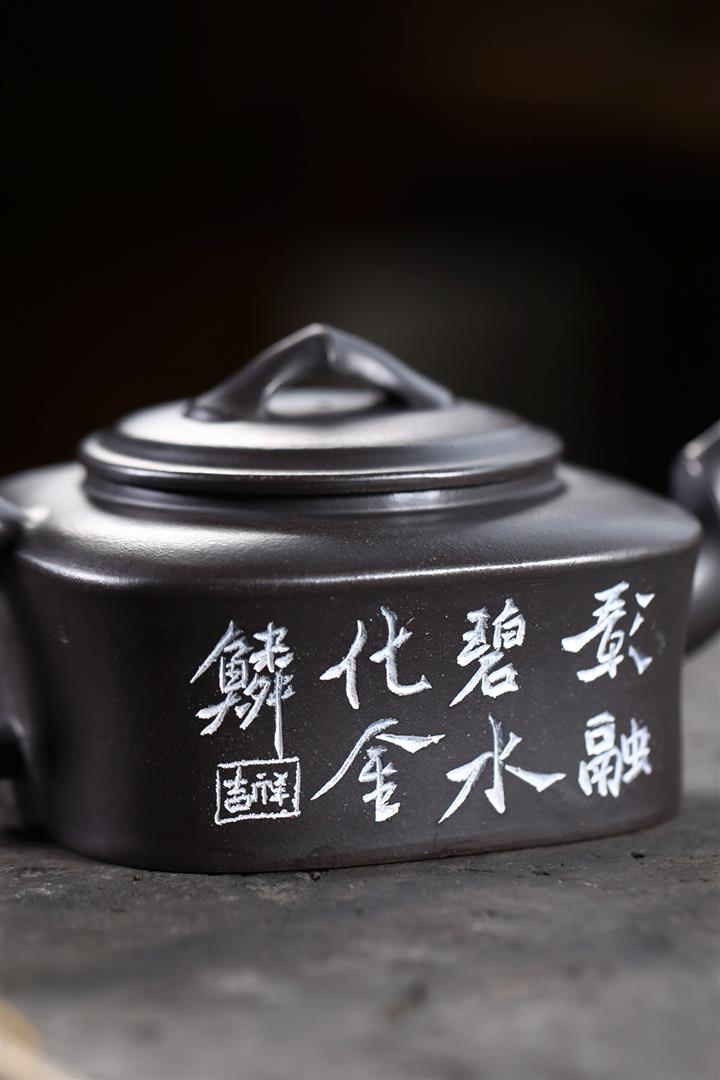 紫砂壺原礦段泥手工刻繪竹韻汲直茶壺功夫茶具pot3772