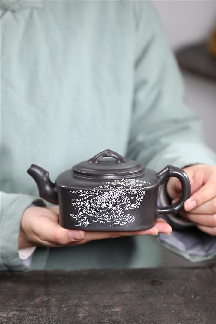 紫砂壺手工茶壺精美刻繪原礦龍背青巨輪珠功夫茶具pot3771