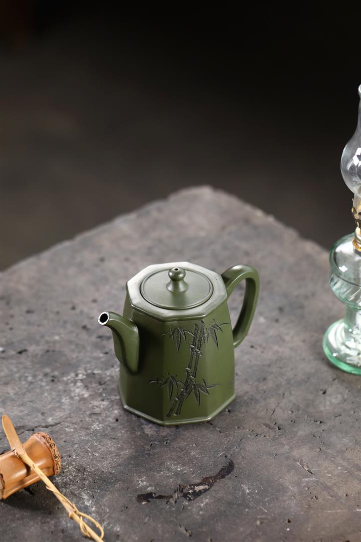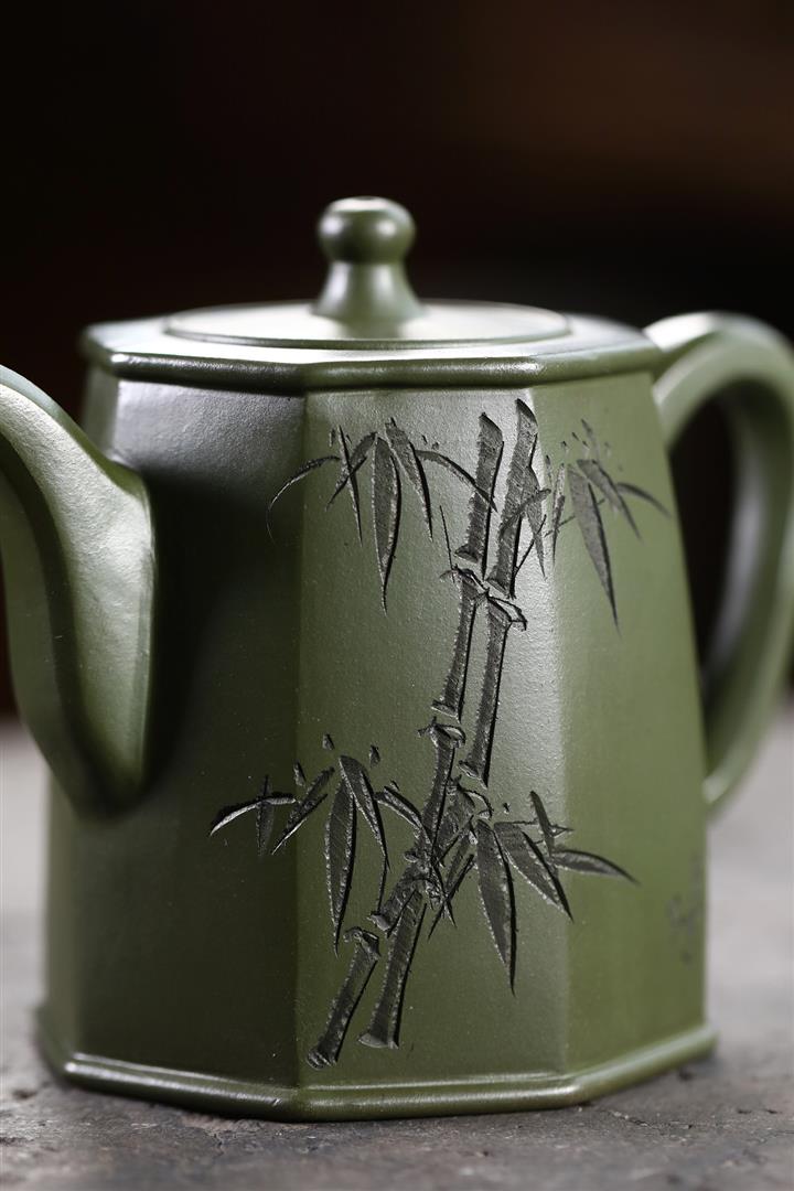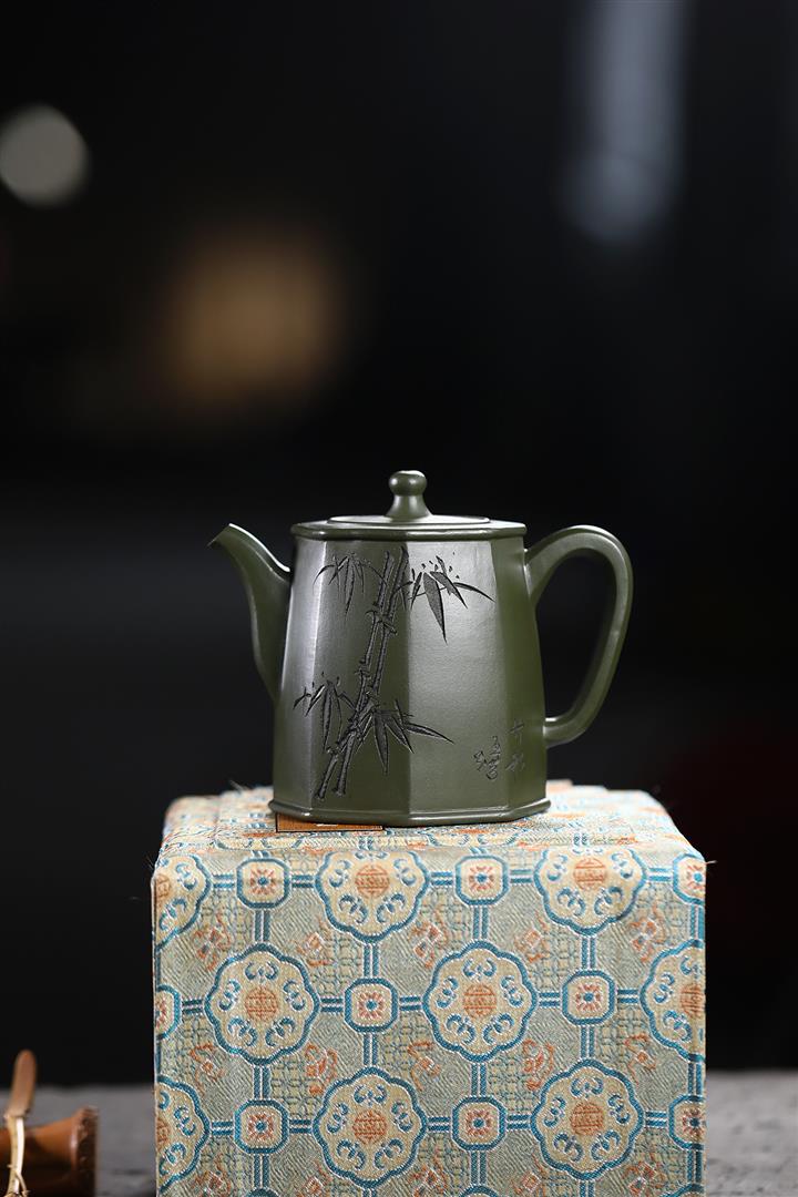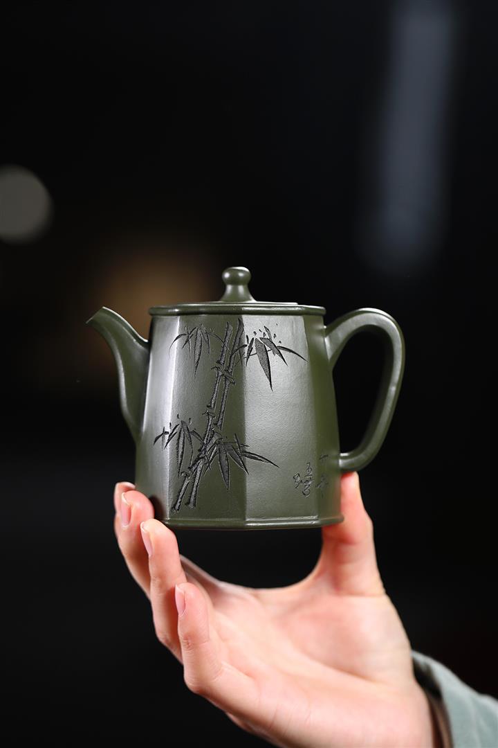 紫砂壺原礦段泥手工刻繪竹韻汲直茶壺功夫茶具pot3772