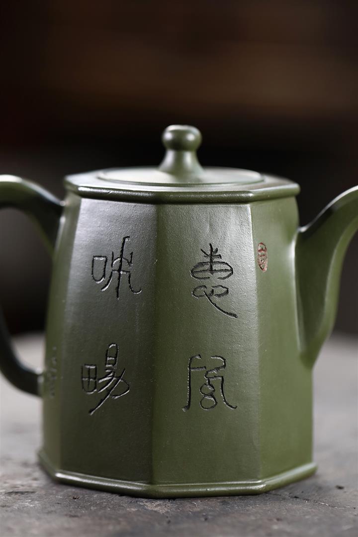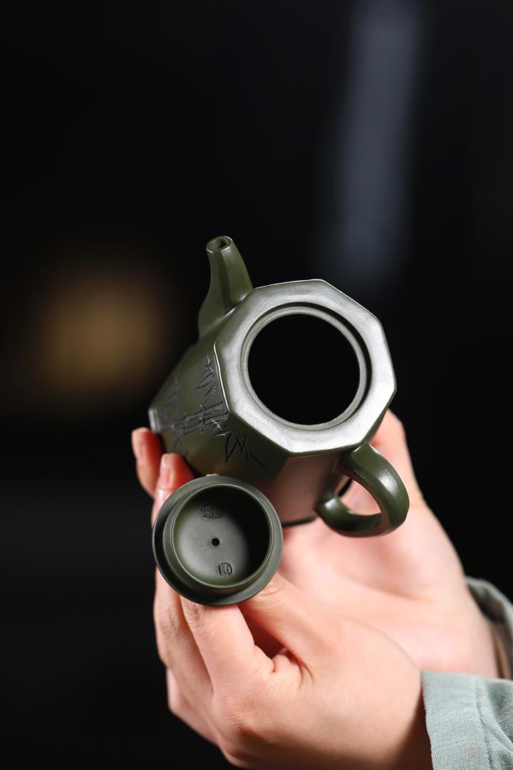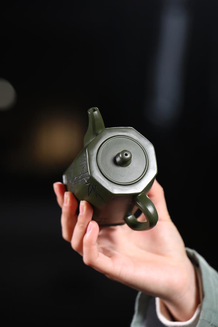 竹簡原礦豆沙青名家手刻宜興紫砂壺工堂pot3778