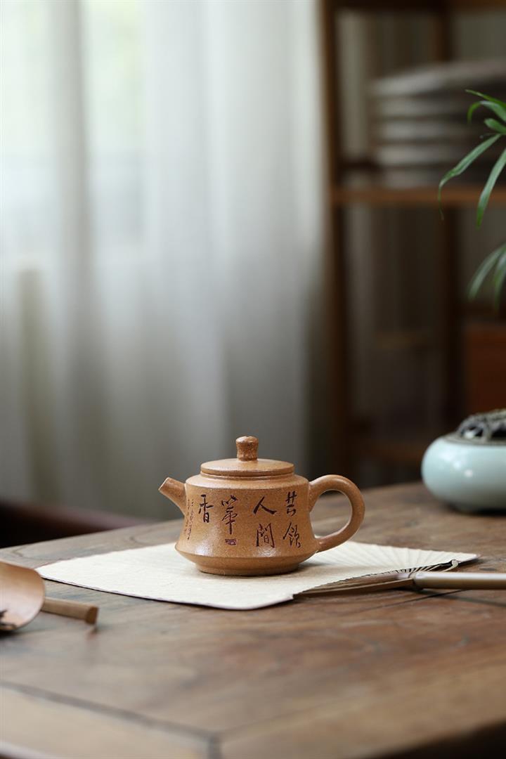 降坡泥茗飲柱礎茶壺純全手工刻字200毫升pot3863
