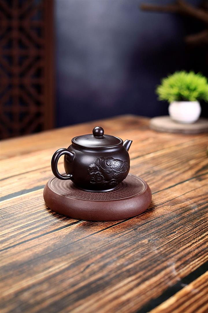 紫砂壺茶壺茶具原礦大紅袍手工製作螭龍合歡壺pot3846