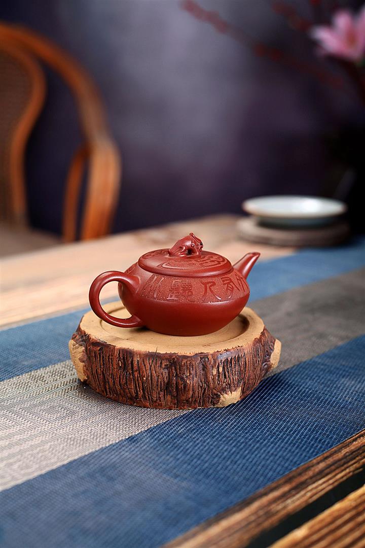 紫砂壺茶壺茶具原礦大紅袍手工製作螭龍合歡壺pot3846