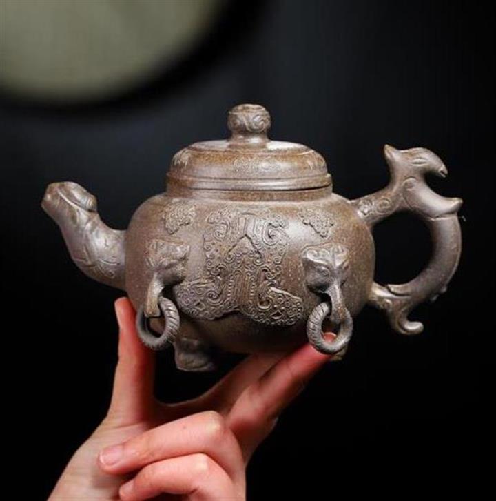 原礦紫砂古銅泥龍鳳三足壺pot3840